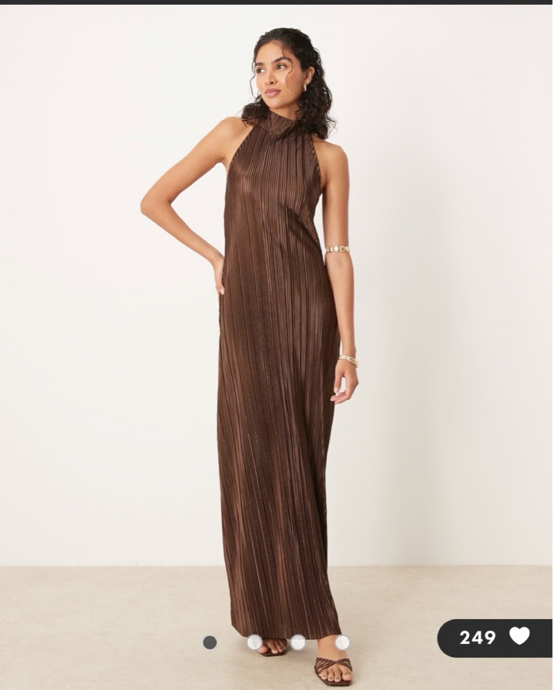 Halter Neck Brown Long Dress by Asos Design - Pickle