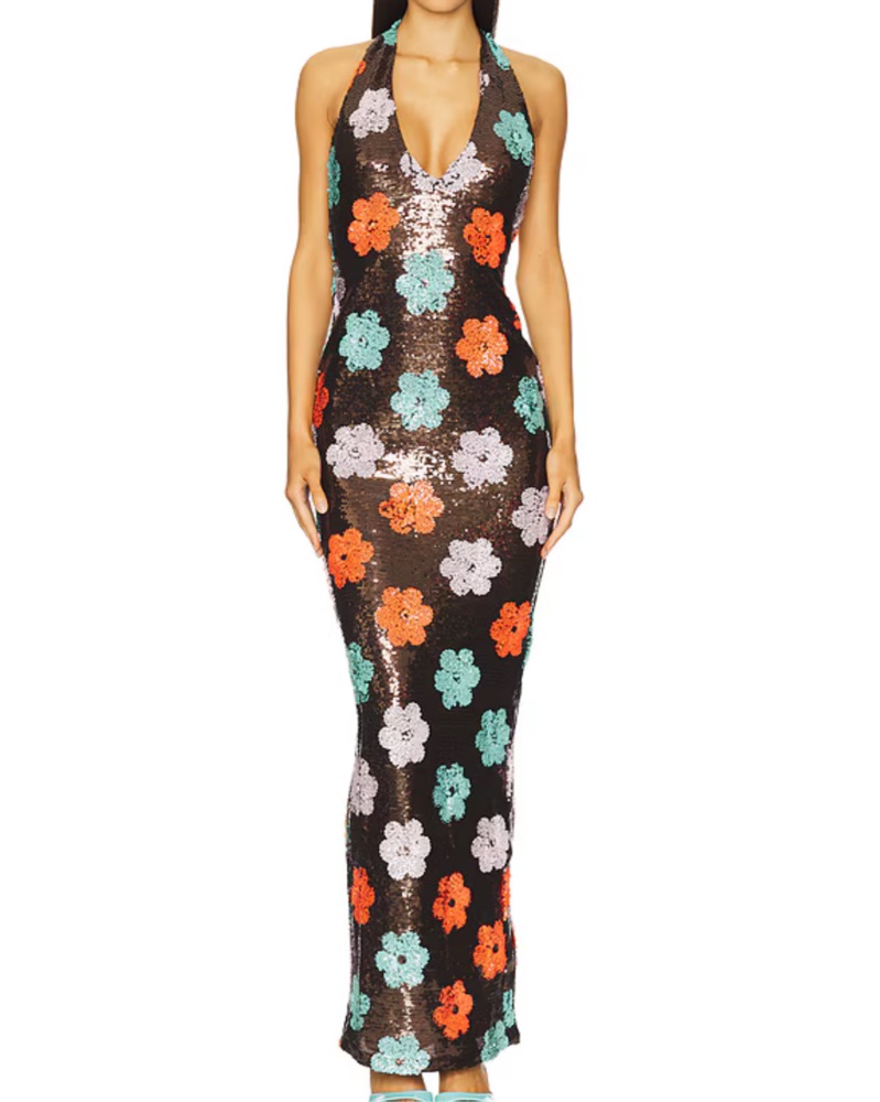 Sienna Sienna Halter Gown in Floral by Nookie - Pickle