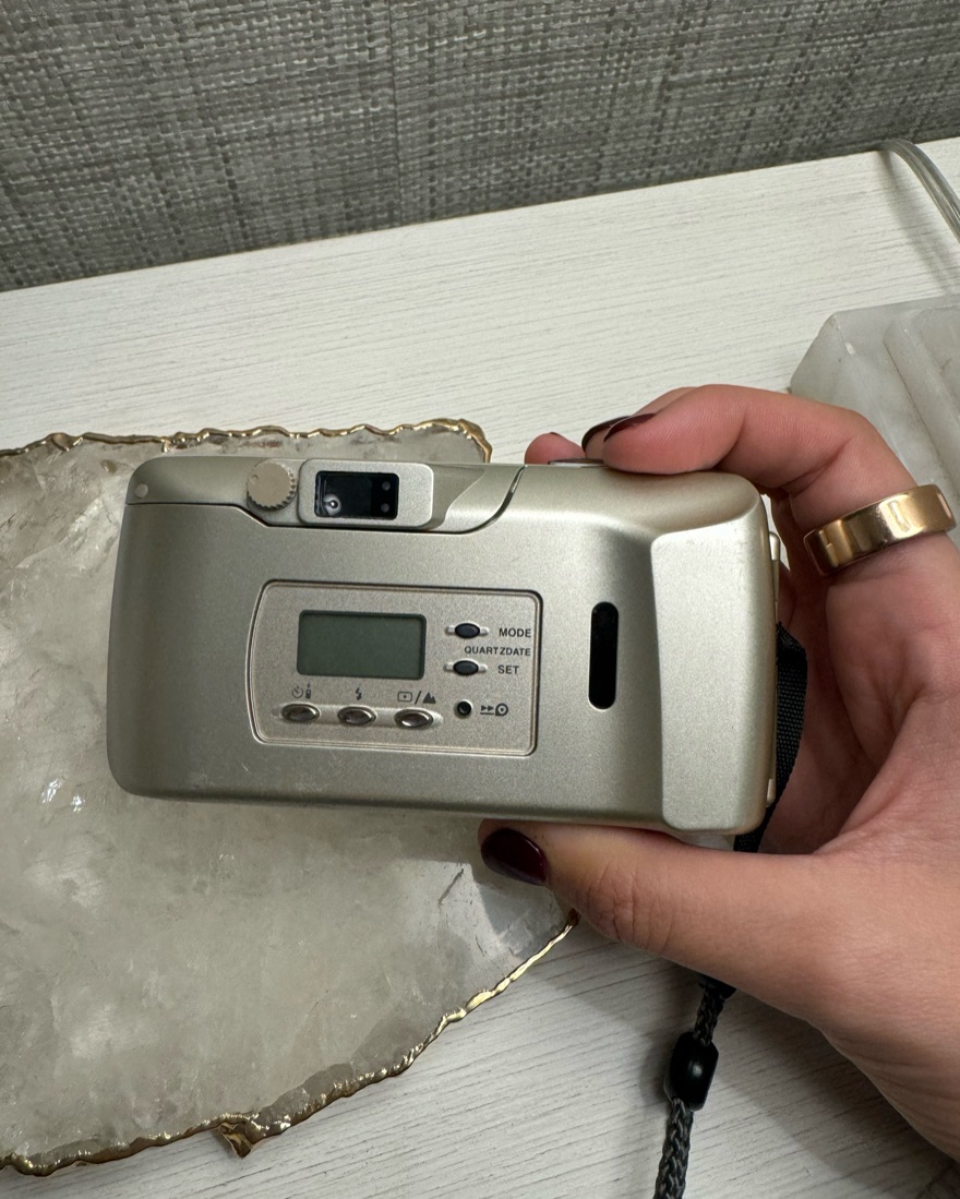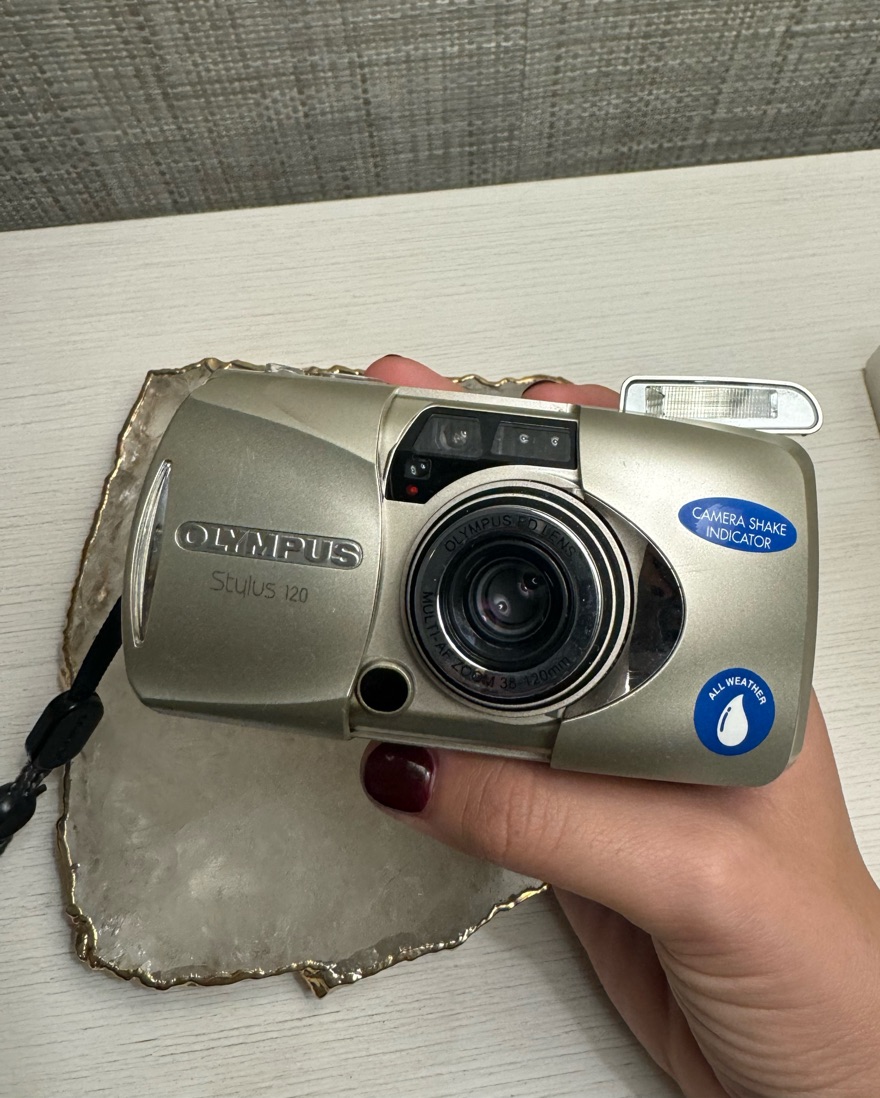 Olympus stylus film camera. All you need is to buy the 35 mm film :)