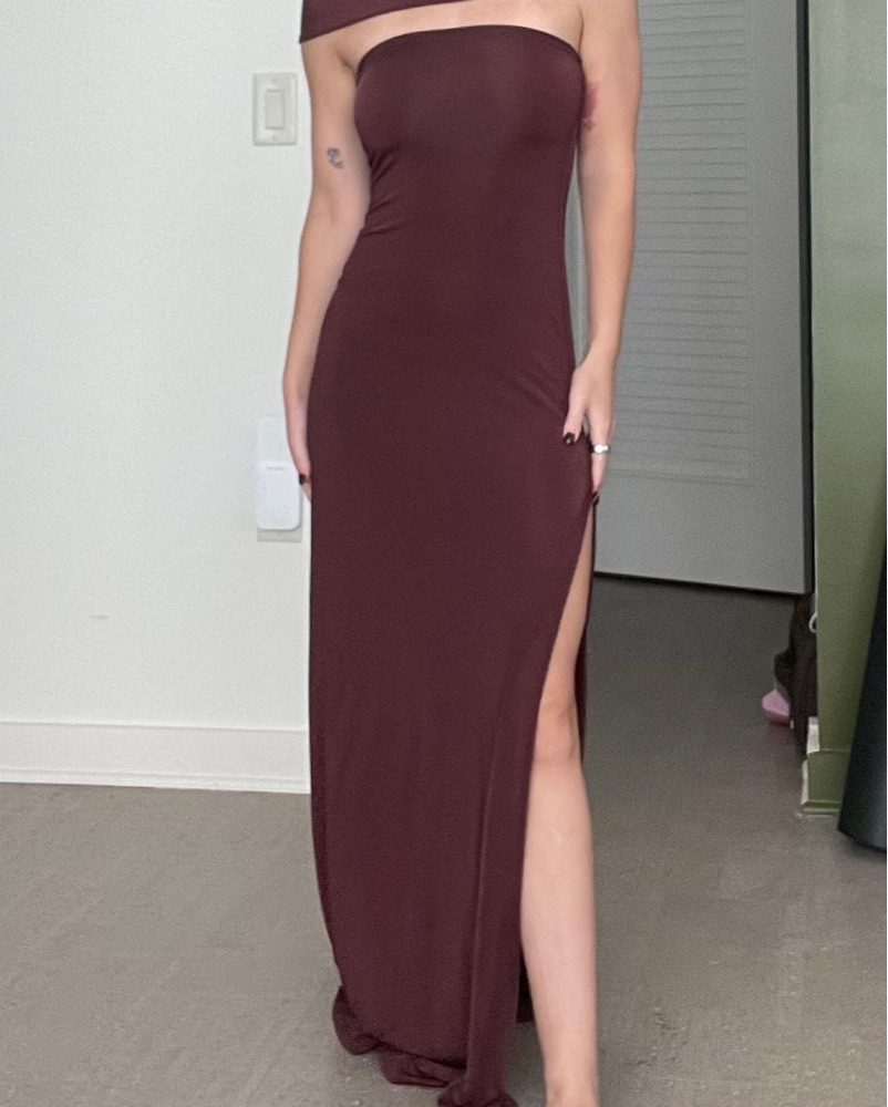 Slinky and Mesh Split Maxi Dress from Meshki. Never worn, tags still on! The neckline can be worn 2 ways, super flattering