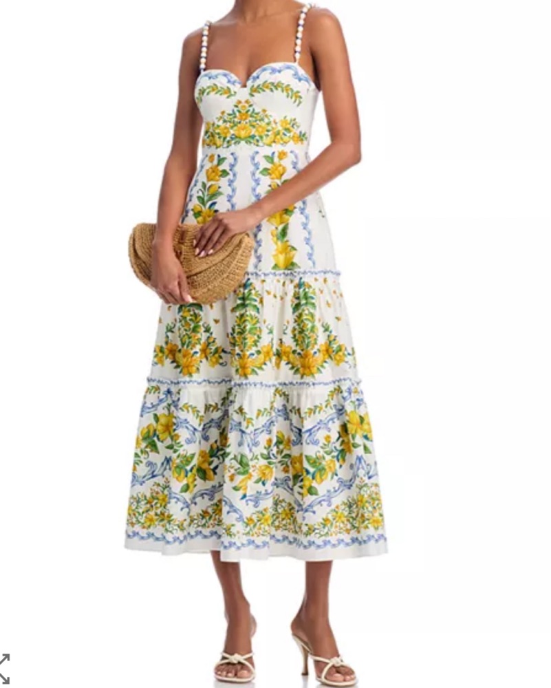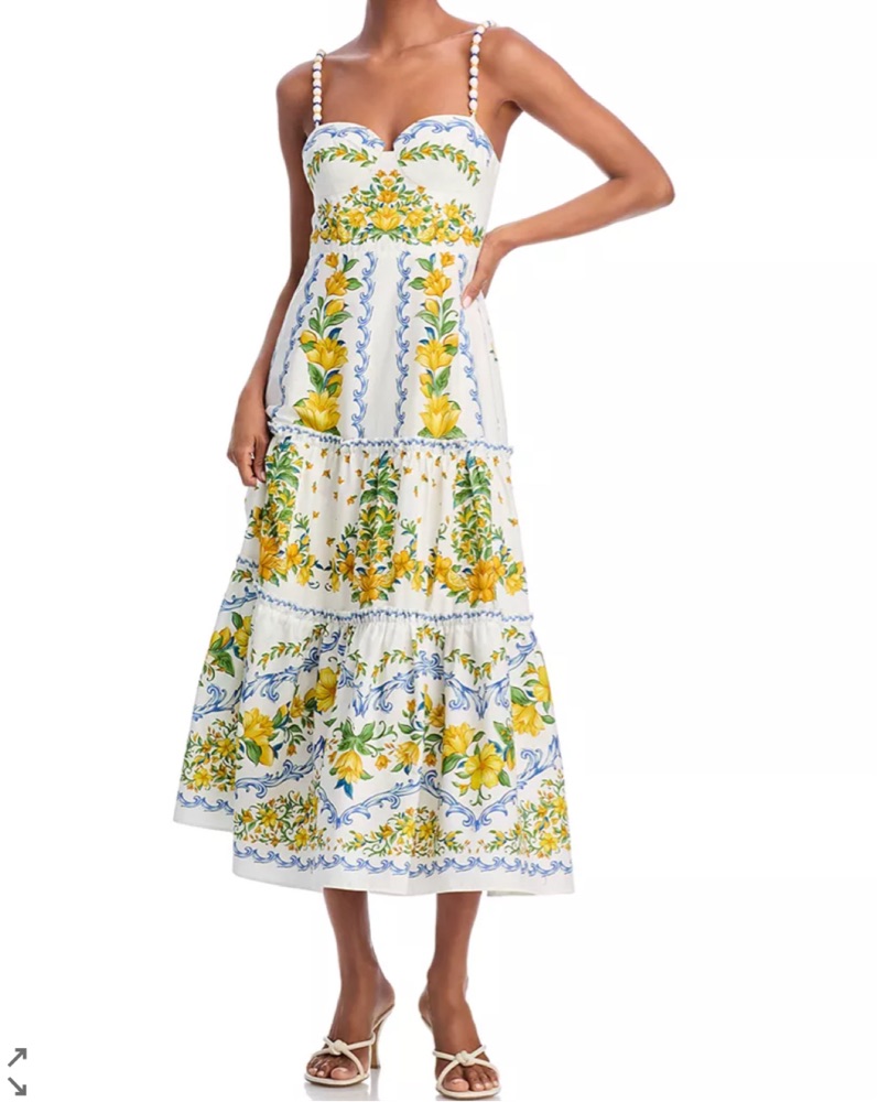 This stunning Farm Rio midi dress is perfect for a garden party, European vacation, or outdoor event. Worn once on my honeymoon in Italy - in perfect condition! Sweetheart neck