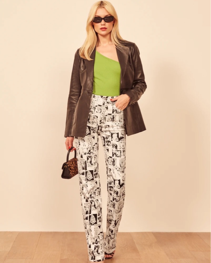 Reformation newspaper/comic jeans, size 27 no longer sold! Straight leg cut, so fun to wear going out.