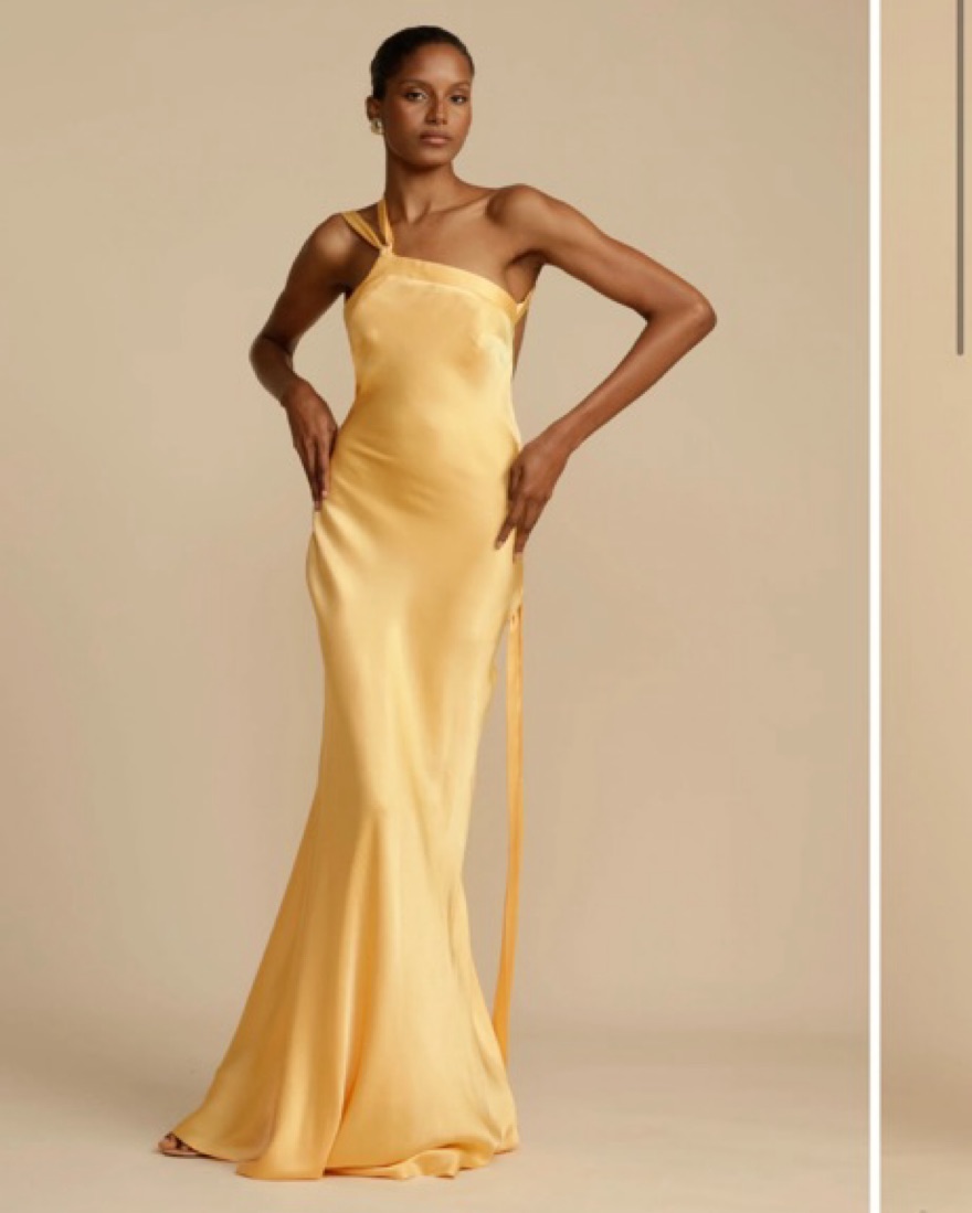 The dress is long, I am 5’7” and wore a few inch heels. Please be aware of this before deciding to rent since the material is delicate.