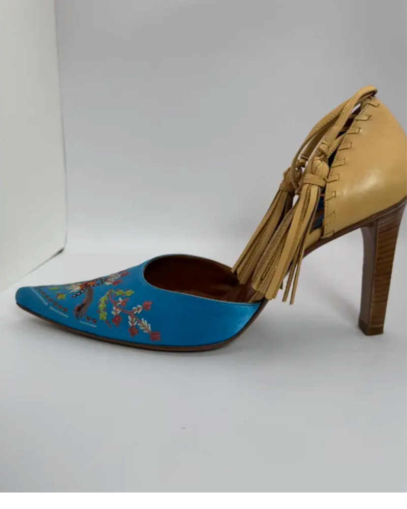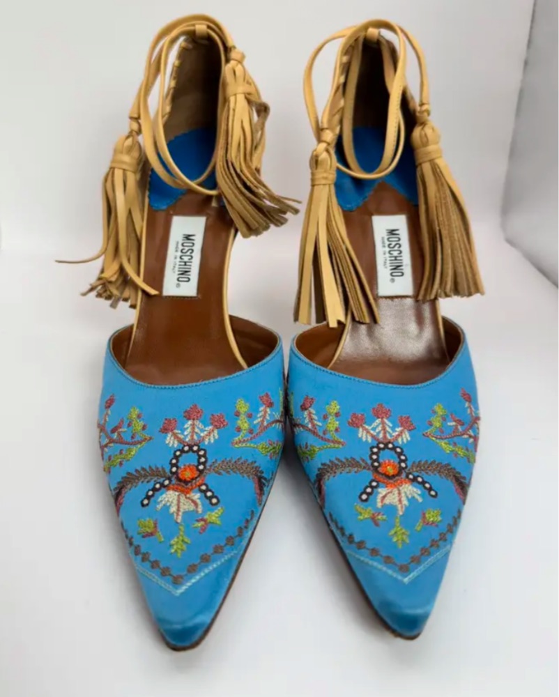 Moschino Embroidered Blue Heels