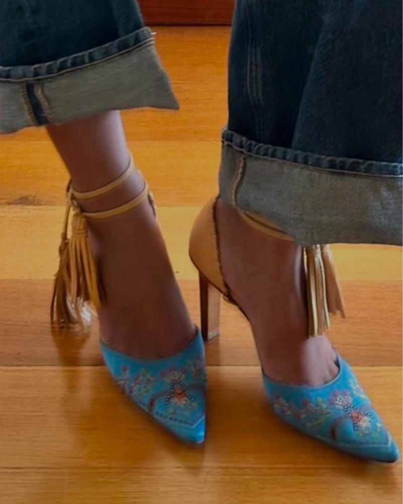 Moschino Embroidered Blue Heels by Moschino - Pickle