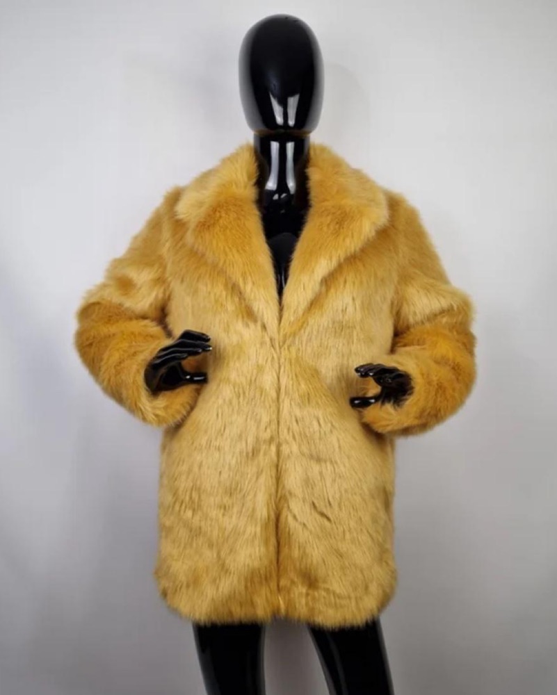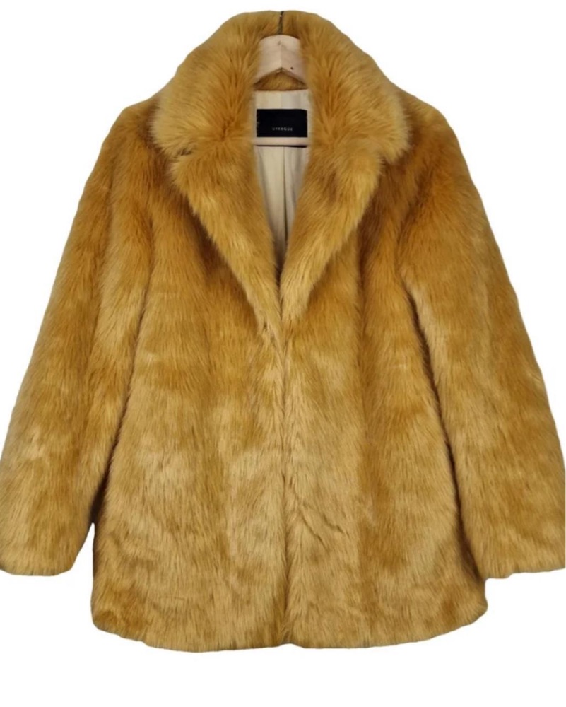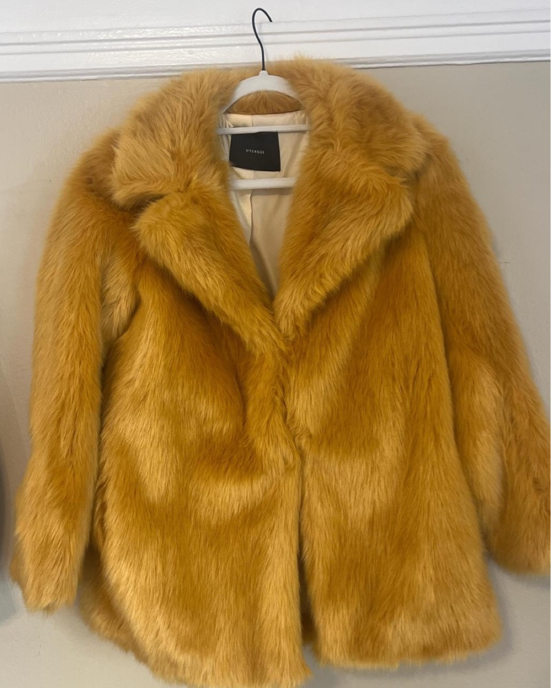 UTERQUE yellow / gold faux fur coat. Such a fun piece!!