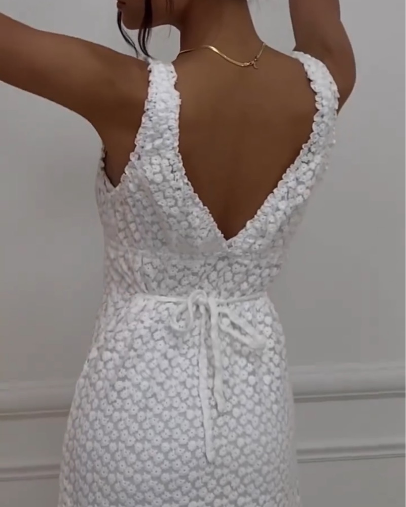 Designed as a reversible dress, this WeWoreWhat floral lace dress can be worn with or without a slip and flipped around for a V neckline or a rounded scoop neck. Perfect for summer bridal events or out to dinner!!
