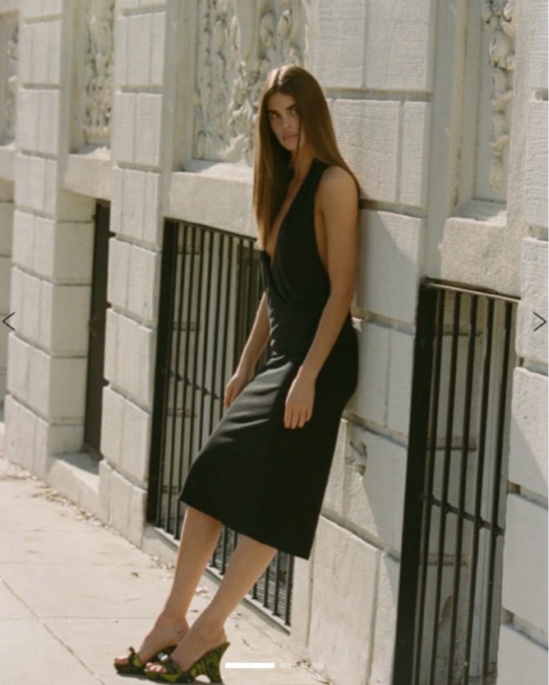 The Alexa Midi Dress, is a relaxed fit midi dress, featuring a plunging neckline and backless design