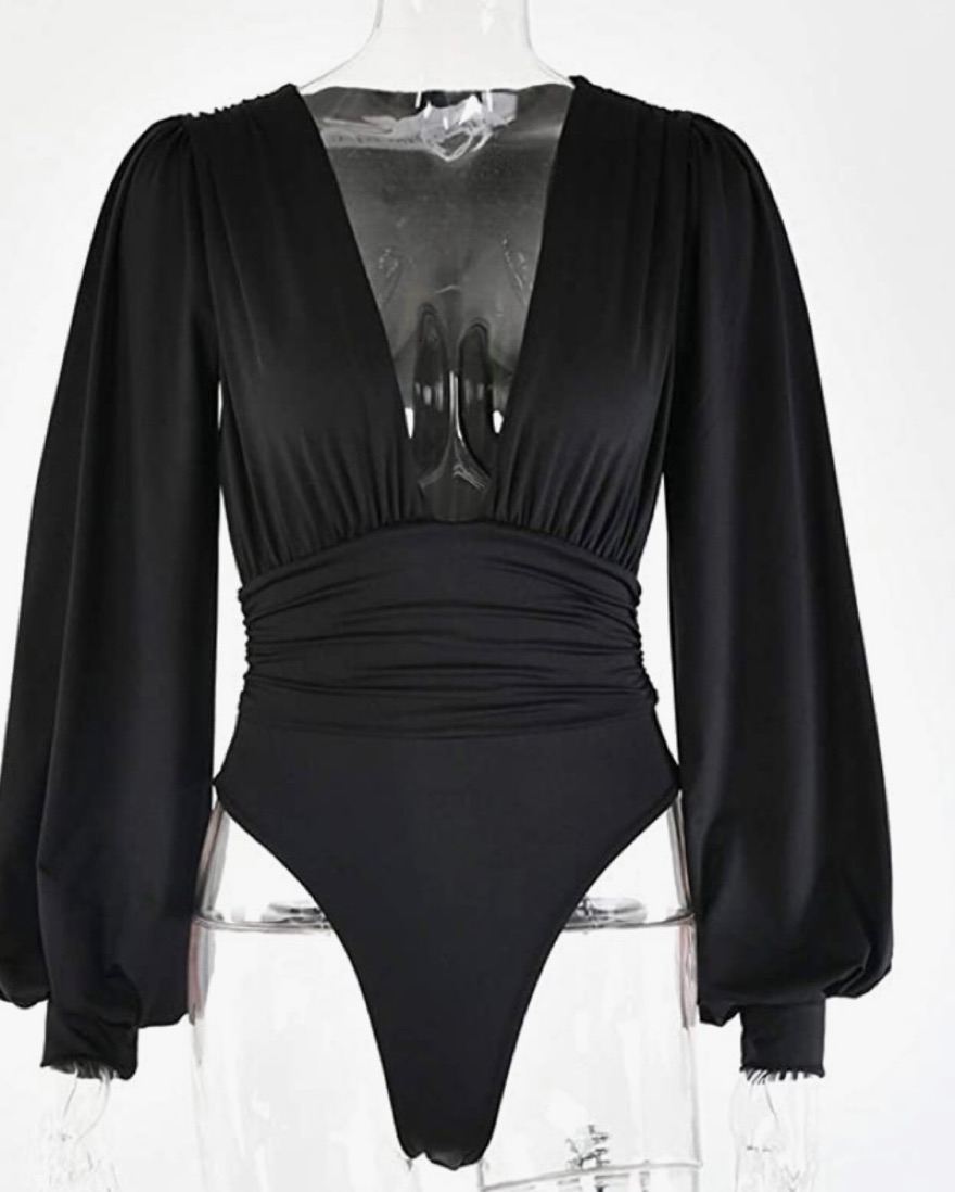 Long Sleeve V Neck Black Bodysuit by Amazon - Pickle