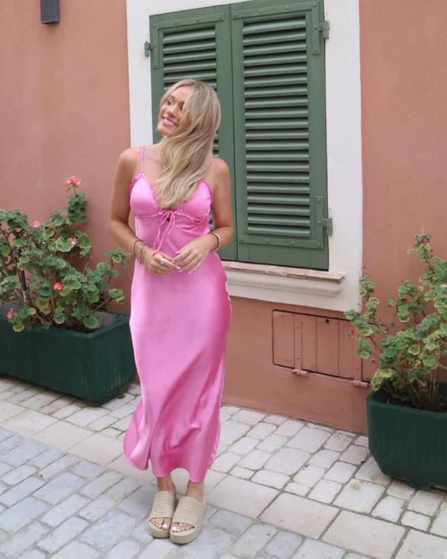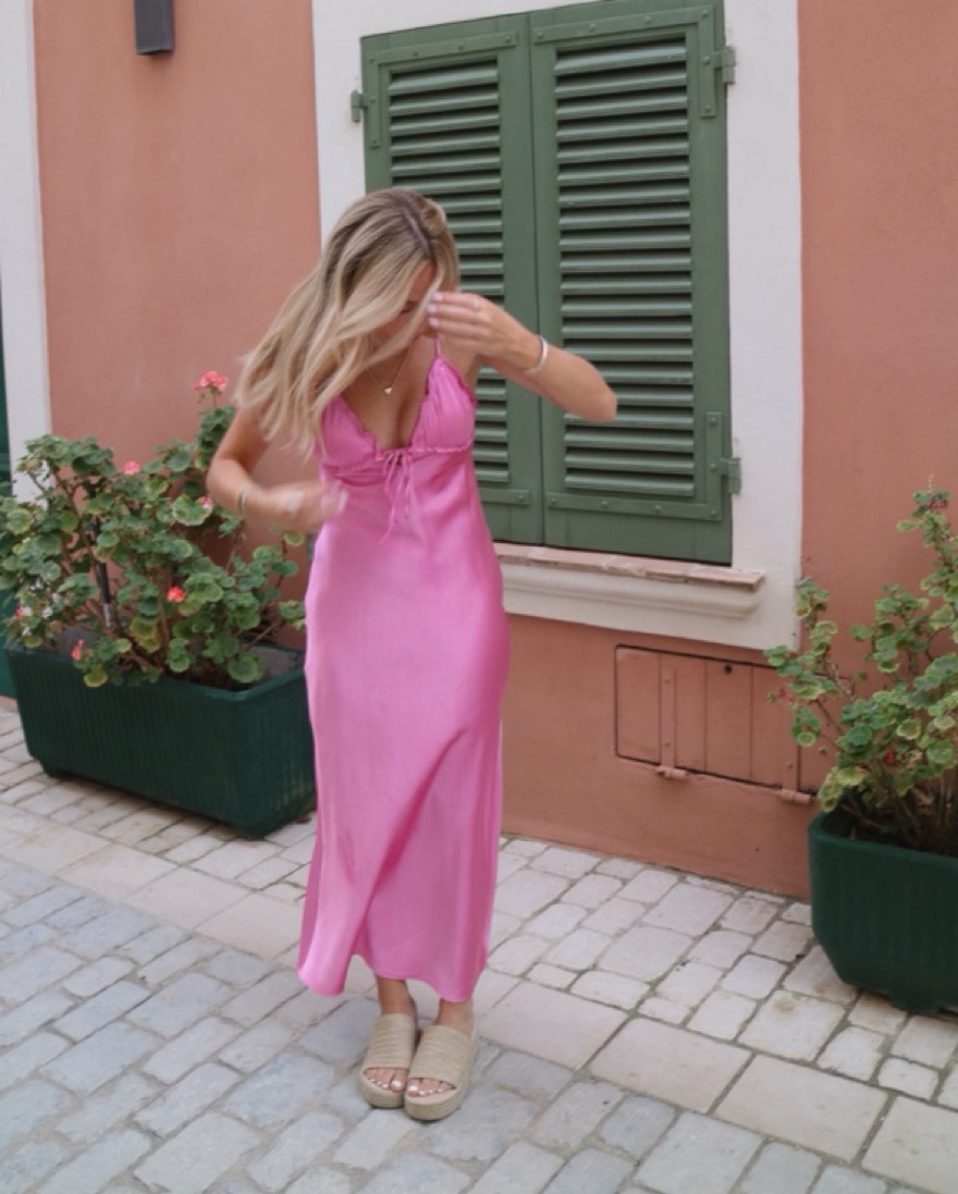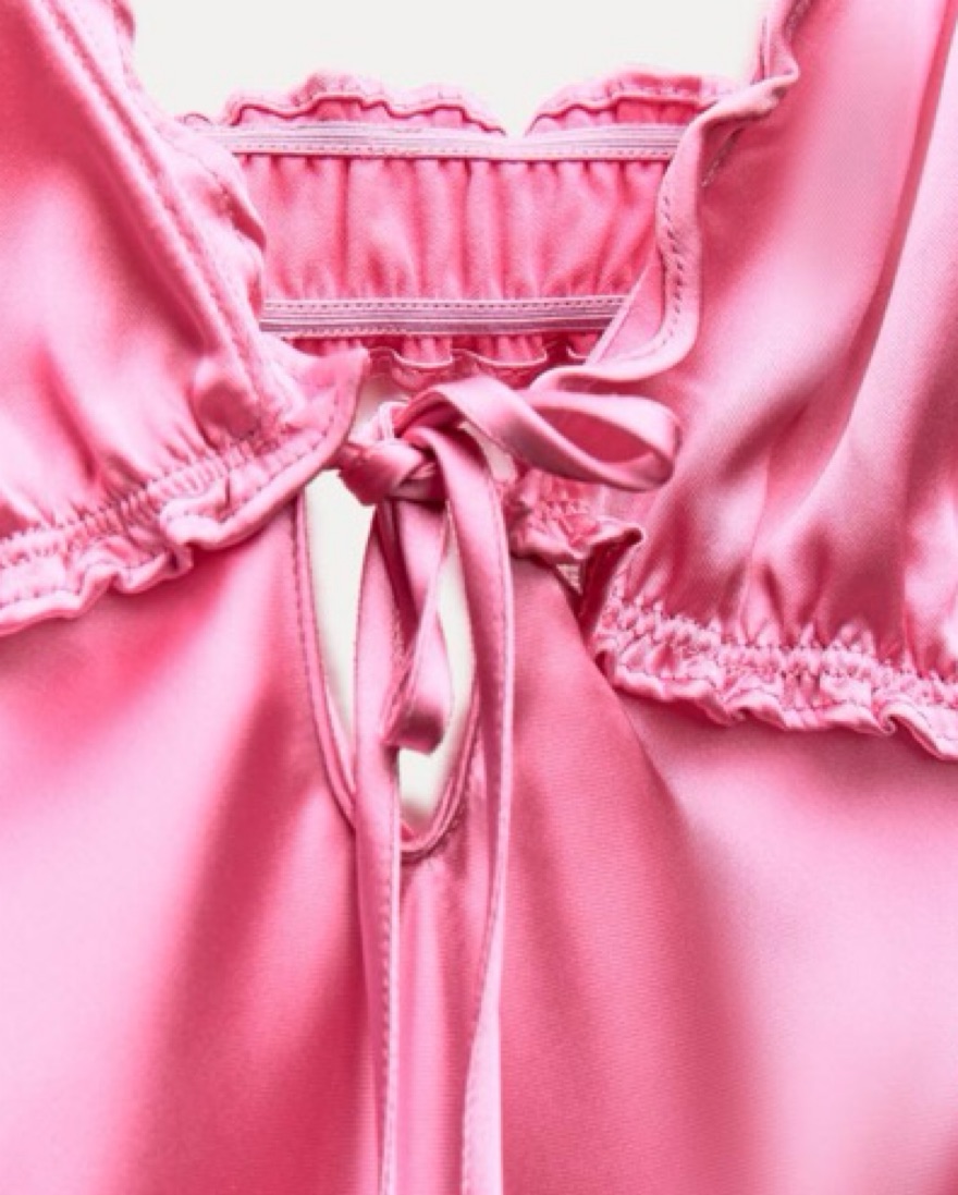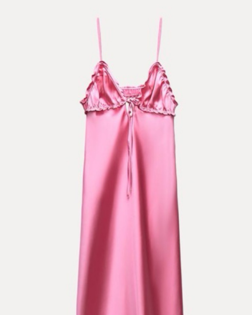 Ruffled Satin Effect Midi Dress by Zara - Pickle