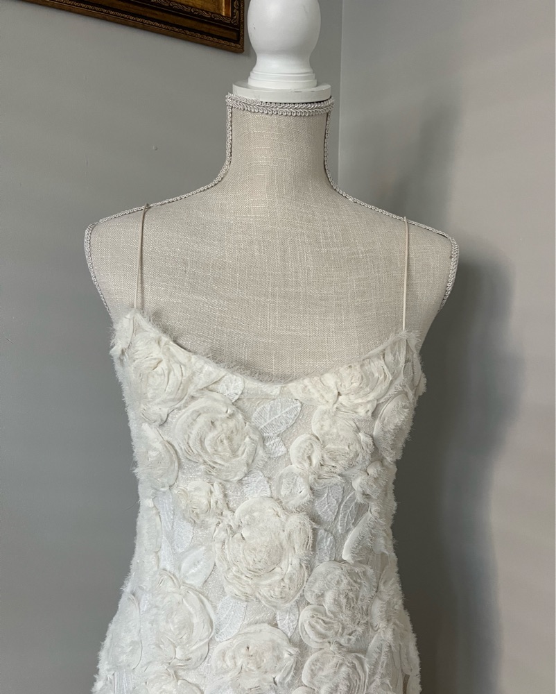 Ivory color, size S/M. Fits a 2/4. Was slightly altered in the waist to give it more shape.