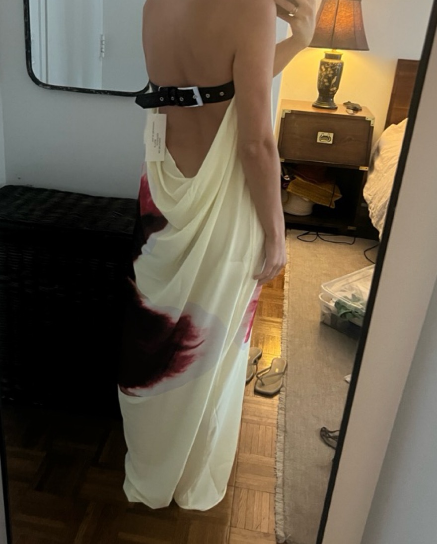 Leather belt Column style fit Cowl back Non-sheer -100% VISCOSE GGT - CONTRAST 100% LEATHER
