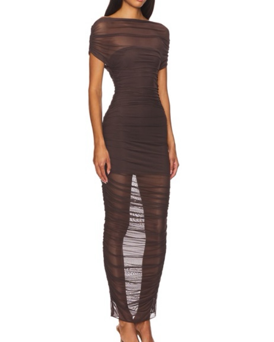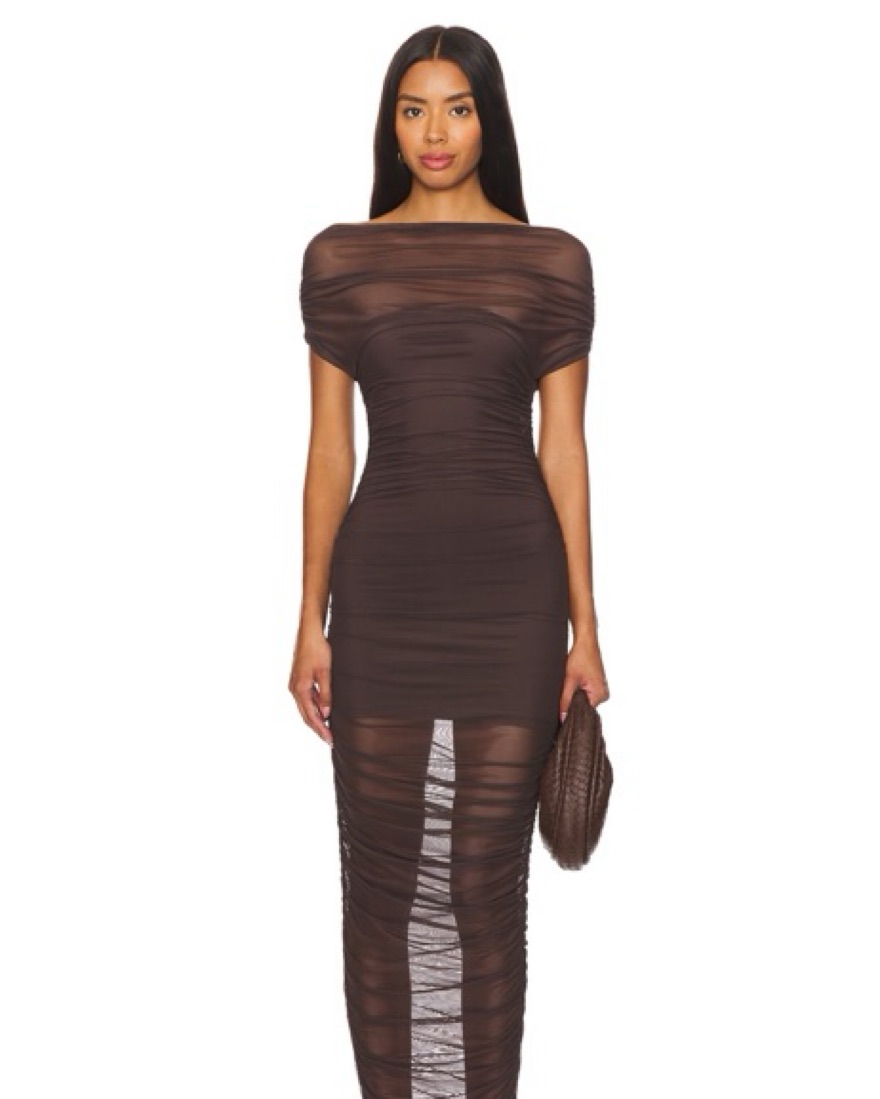 Brown Sheer SER.O.YA Maxi Dress by SER.O.YA - Pickle