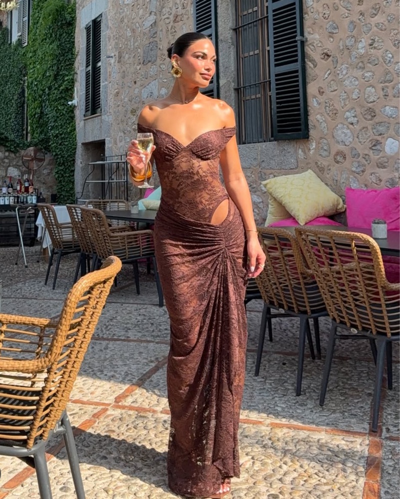 Natalie Rolt Aubrey dress in black. Midi, off the shoulder. Size 1 fits XS-S. Bodysuit is attached to the skirt. Side slit. Sheer lace, lined bust. MUST wear w/ underwear. Going out, vacation, birthday, it girl, NYE. *Shipping is only available if you are buying the dress.*