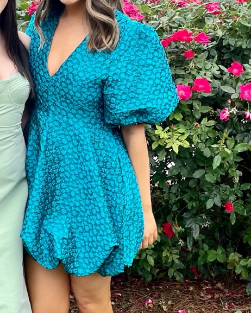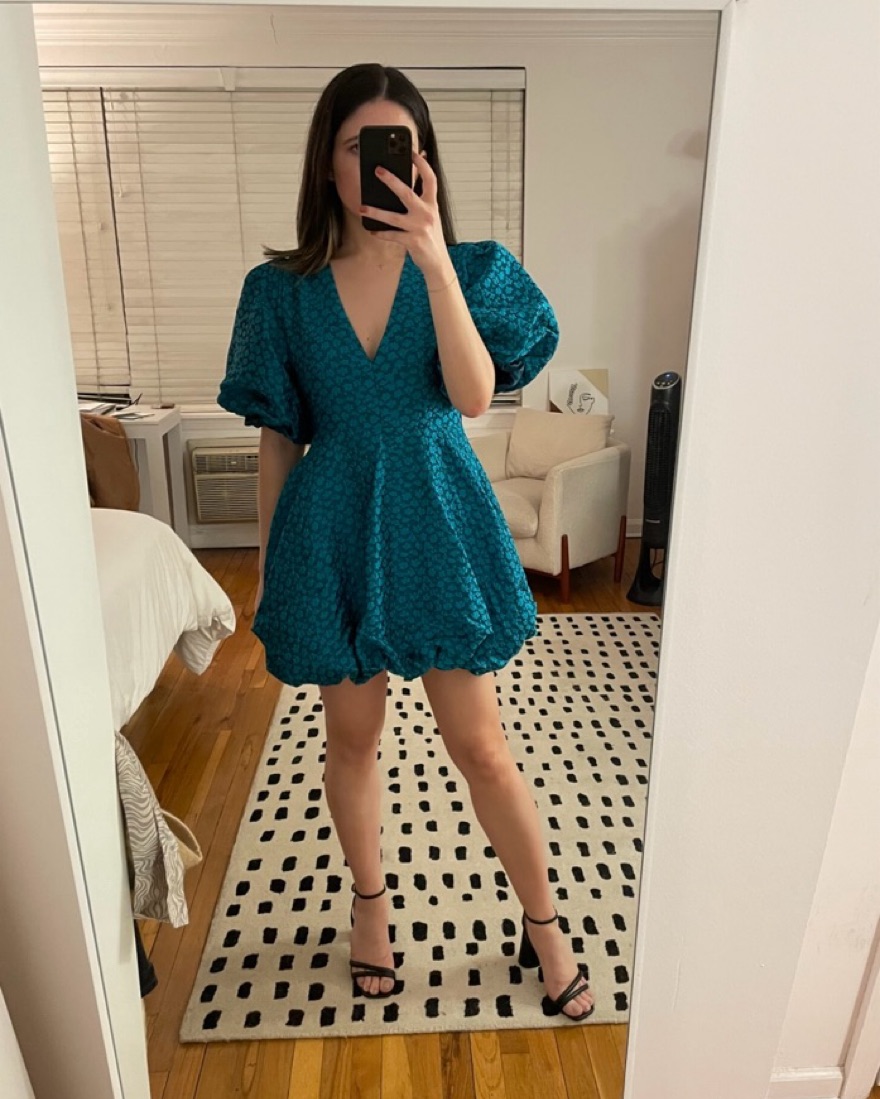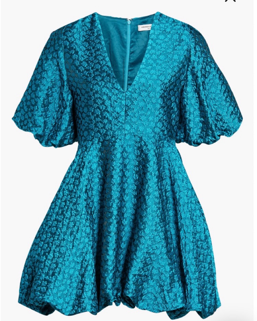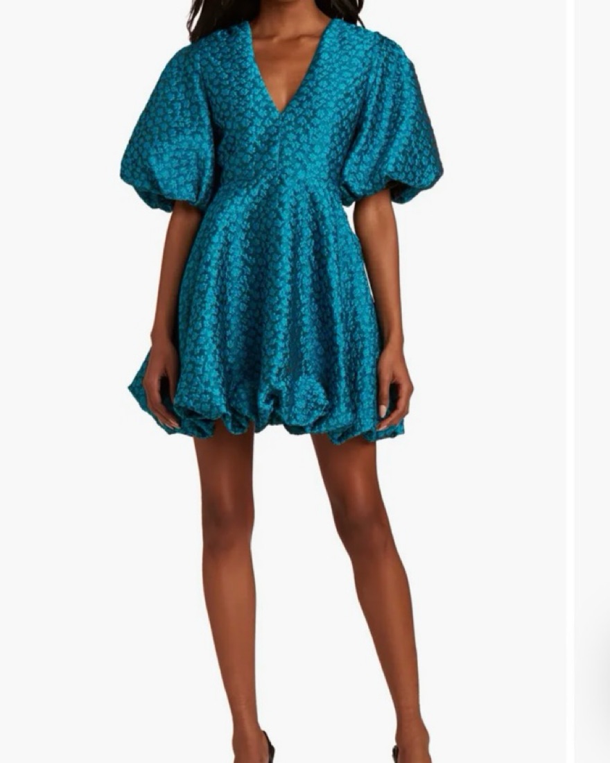 Amanda Uprichard Minta Floral Jacquard Babydoll Bubble Minidress EDEN, Size Medium, fits true to size