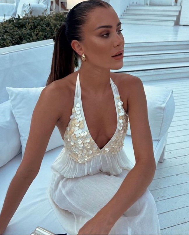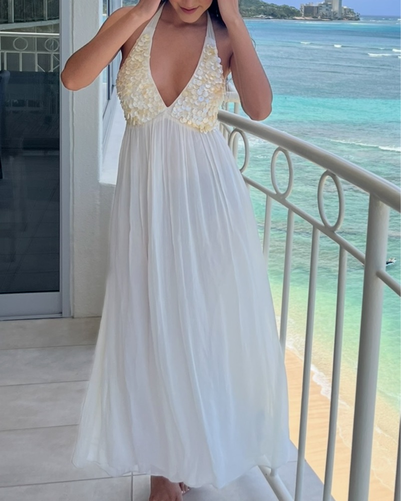 Seashell White Halter Maxi Dress by Zara - Pickle