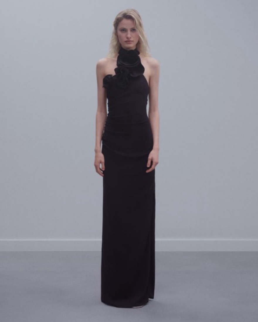 Stunningly beautiful black gown black tie gown with drape neck tie. Wedding guest or other formal event! If you want to dry clean it yourself happy to rent lower price message me. Neck scarf
