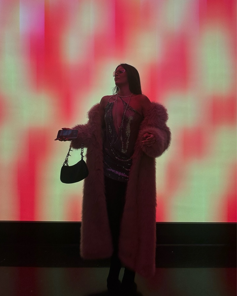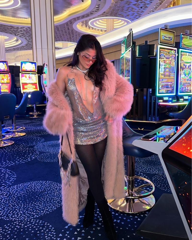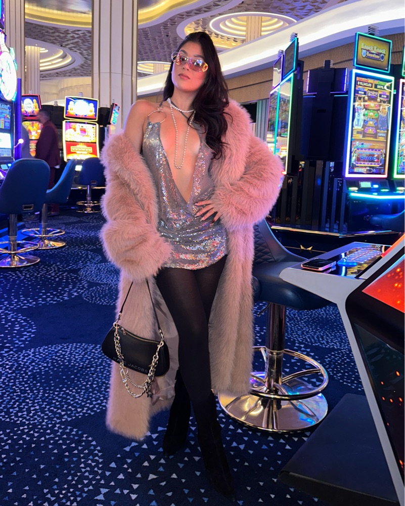 This long dramatic faux furry coat is perfect for a night out on the town. The color and figure-hugging silhouette exude confidence and style.