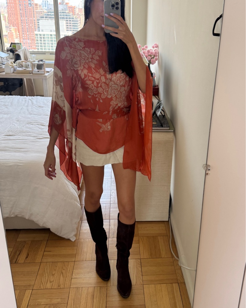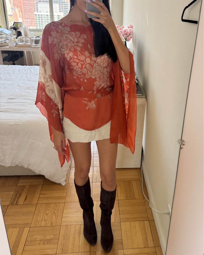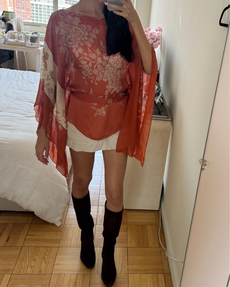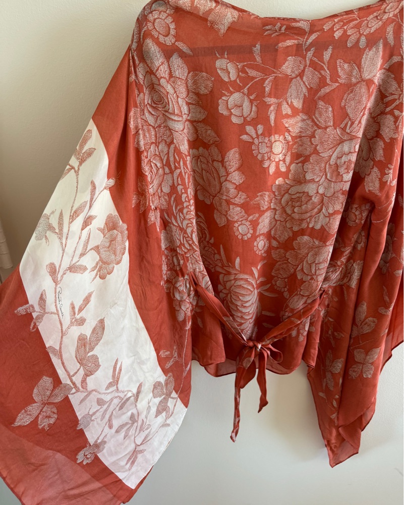 Gorgeous wrap cape top. Can be worn with or without the belt. Great vintage condition. Size is 40, fits like a small.