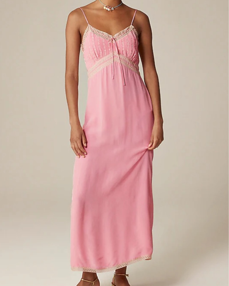 Jcrew Pintuck lace-trim slip dress Pink