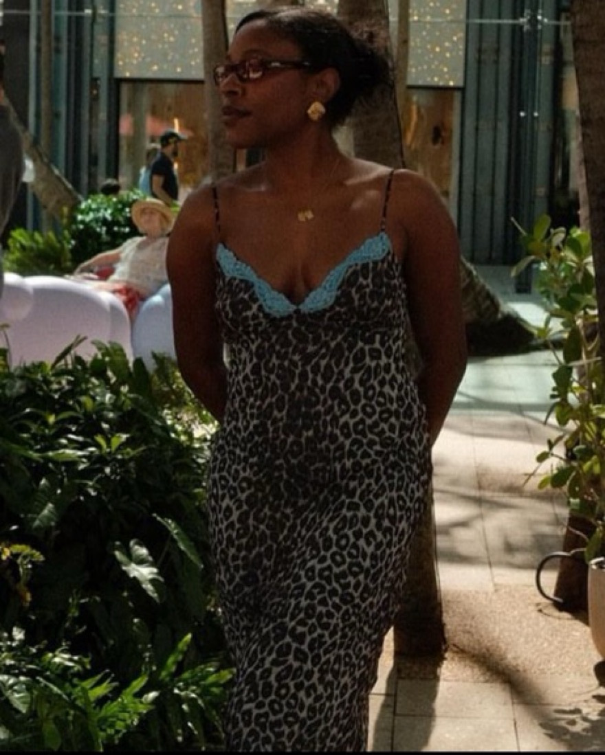 Size M fits 4-8. Brand runs a tad small. Super chic! Perfect for summer date night! Night out, vacation dress