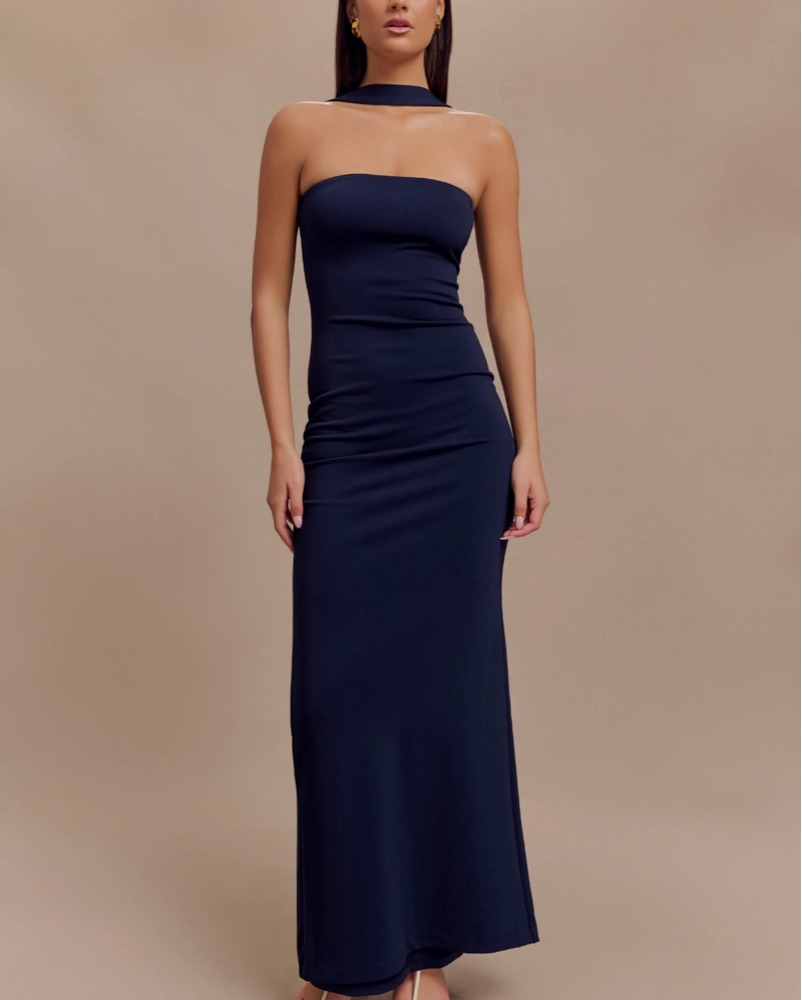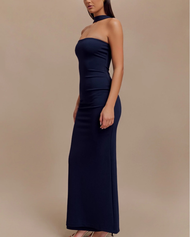 Velma Halter Collar Maxi Navy Dress - perfect formal wedding guest attire and formal