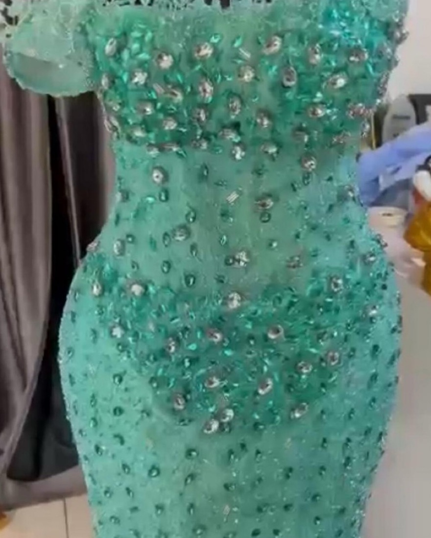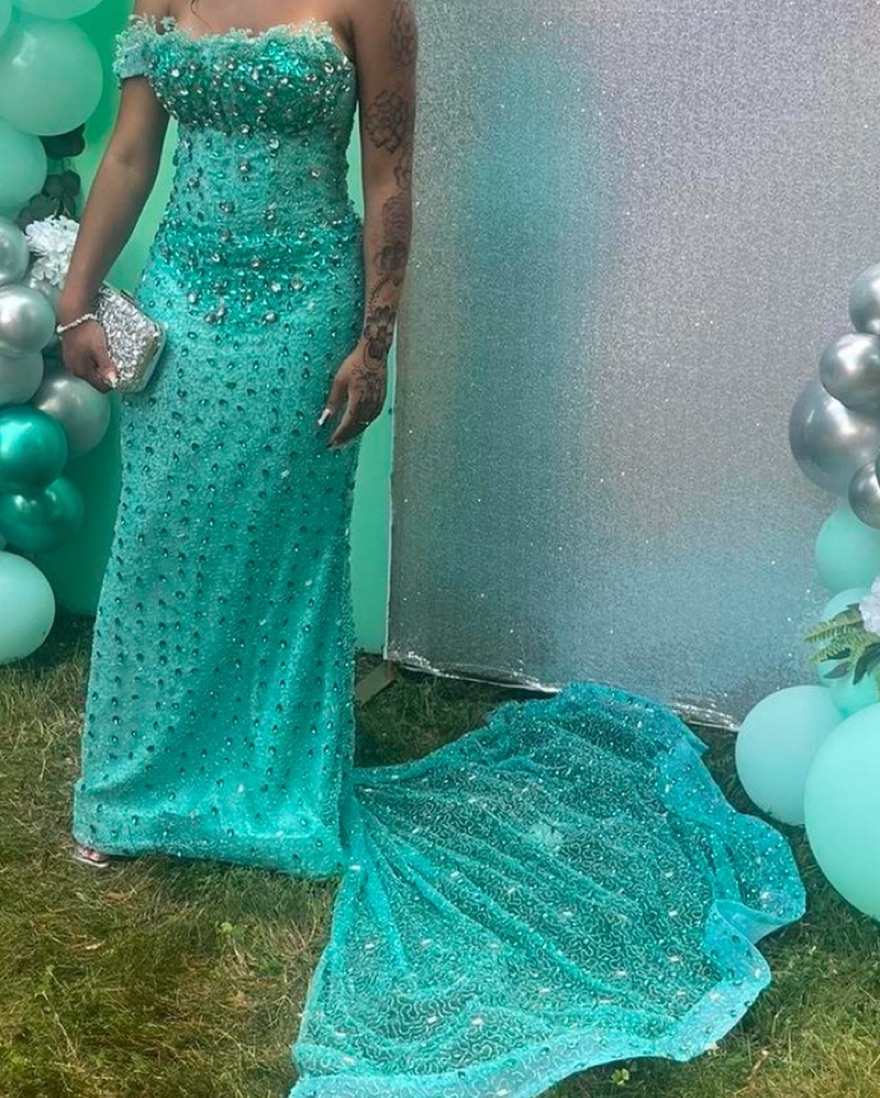 Sparkling Teal Nigerian Made Prom Dress