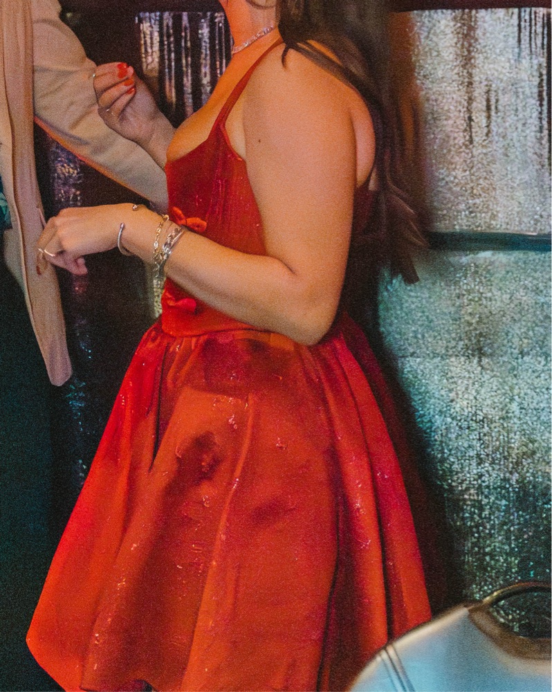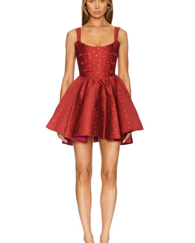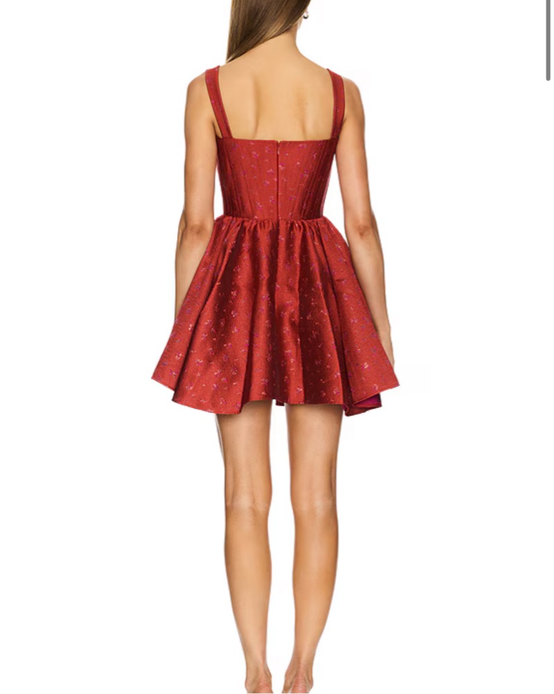 Sau Lee mini dress, size 8, with a structured corseted bodice that cinches the waist for a flattering hourglass fit. Finished with a full, flared skirt and a rich, substantial fabric that feels luxe and supportive. Perfect for cocktail parties, birthdays, or a standout night out. Worn once like new.