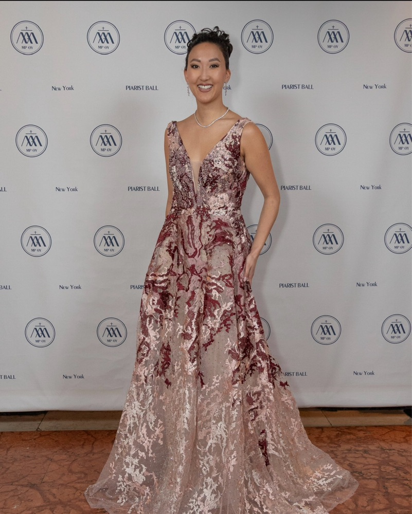 This was too big on me. I’m a size small and I had a lot of room. It was falling off me bc I don’t have a large bust. I would say it’s a size medium. :) I bought online from New York Dress but I forget the brand. pls be careful bc it touches the floor/ to be stepped on