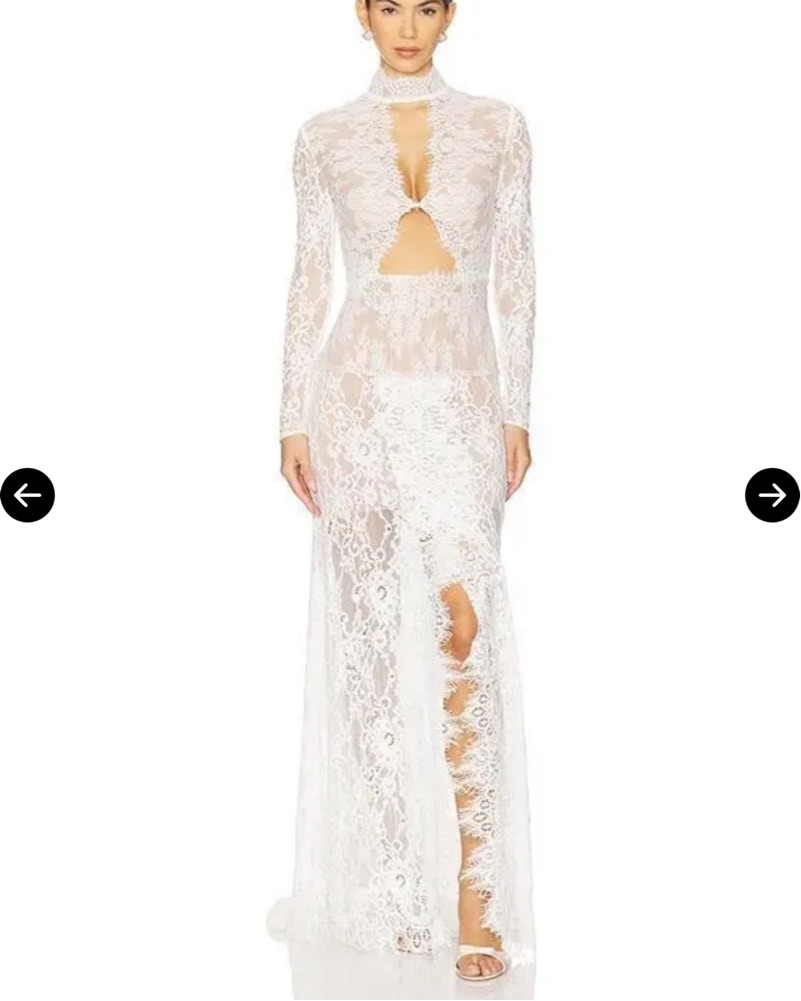Bronx and banco, XS has a decently long train depending how tall (I’m 5’3”) wearing for an hour for engagement photos on April 7th. It’s stunning. All lace, it has a nude lining and slit.