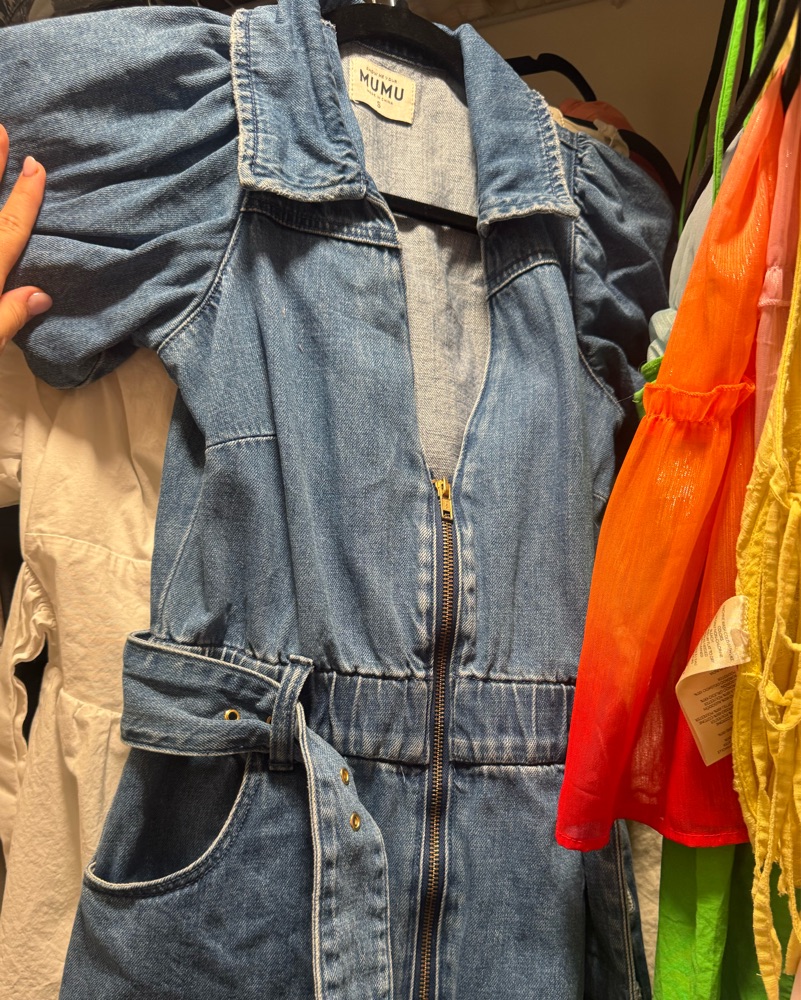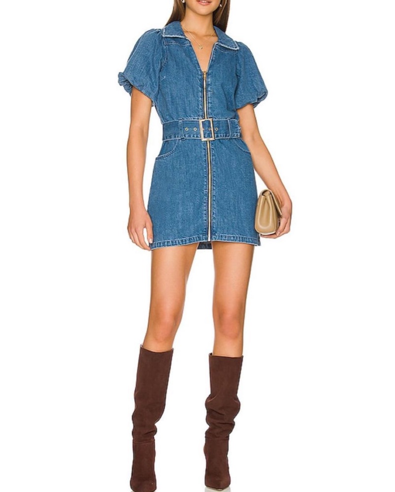 Denim puff-sleeved belted mini dress! Perfect for gameday. Size small