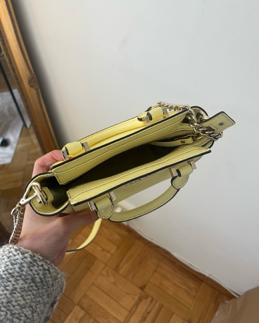 This pastel yellow purse adds a perfect pop of color for spring or summer!