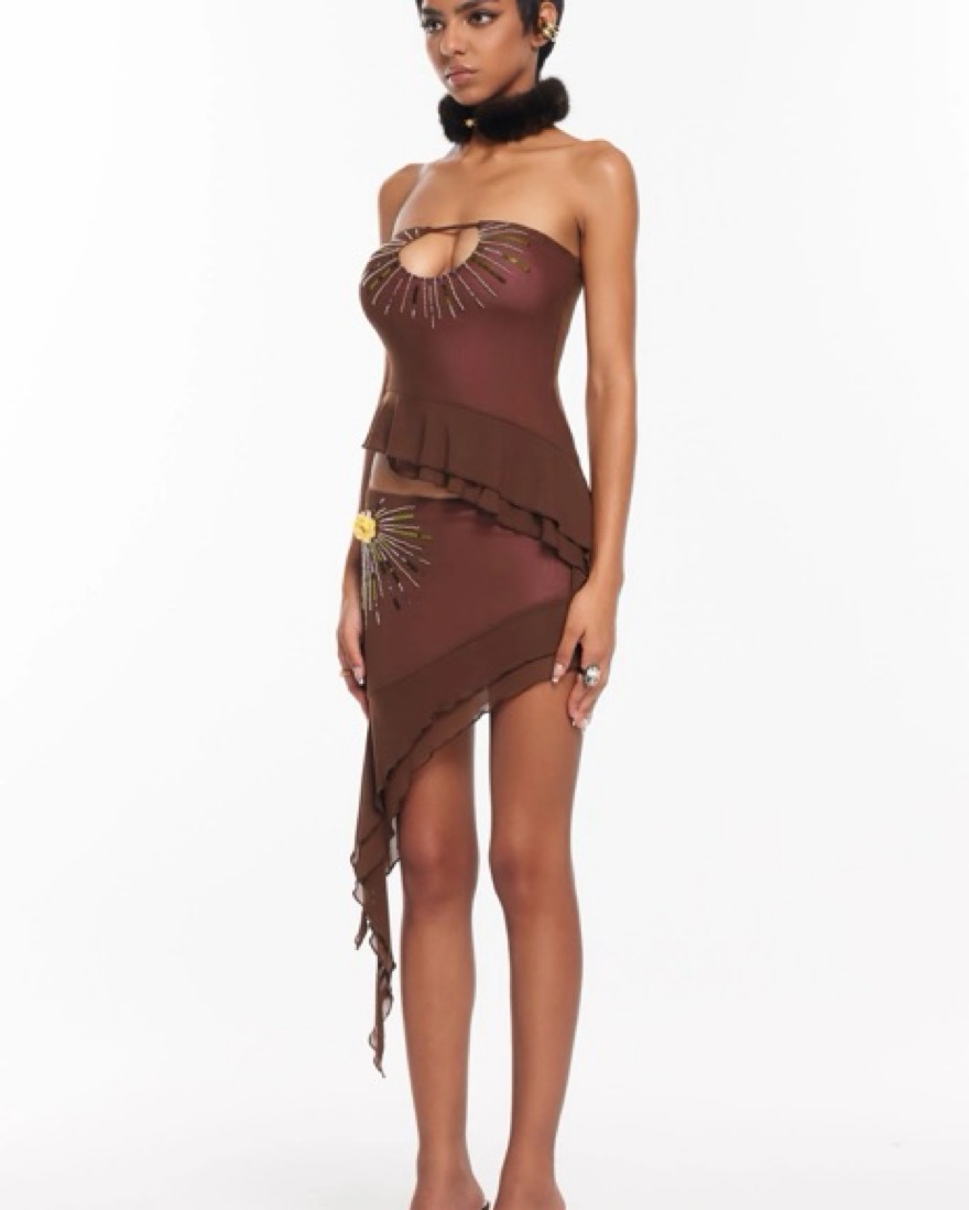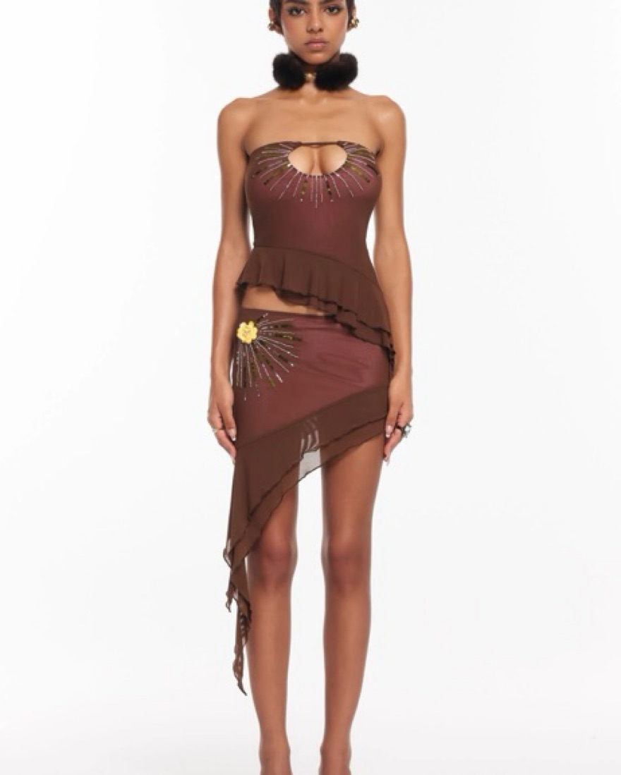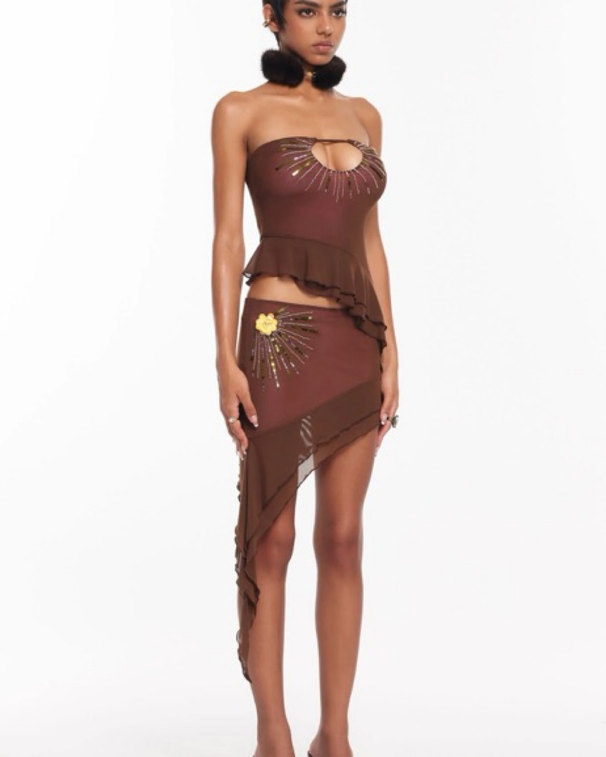 Top and skirt set by the Kript (sold out). Please let me know if you’d like to rent individual items. Both pieces are size XS.