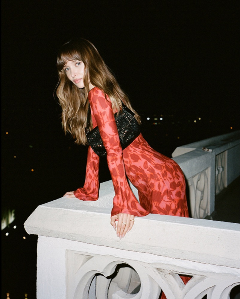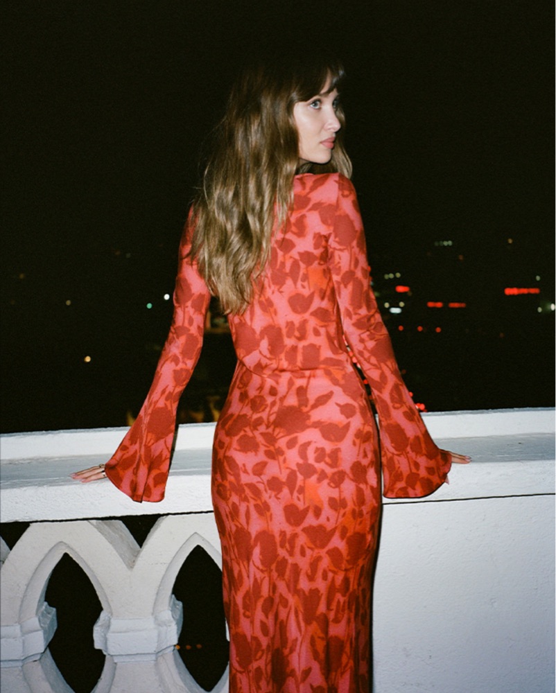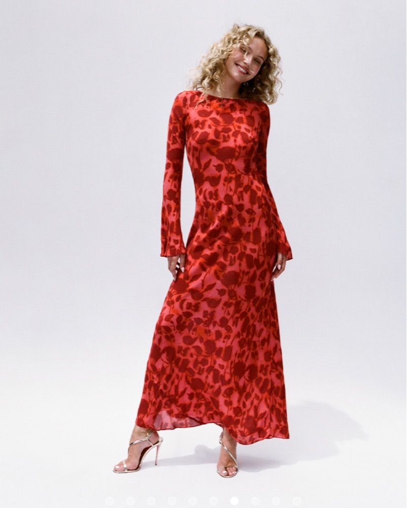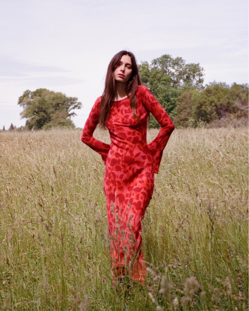 Realization Par Gia Dress in Havana red floral print! Slip style with bell sleeves. Size small (same size shown on model)