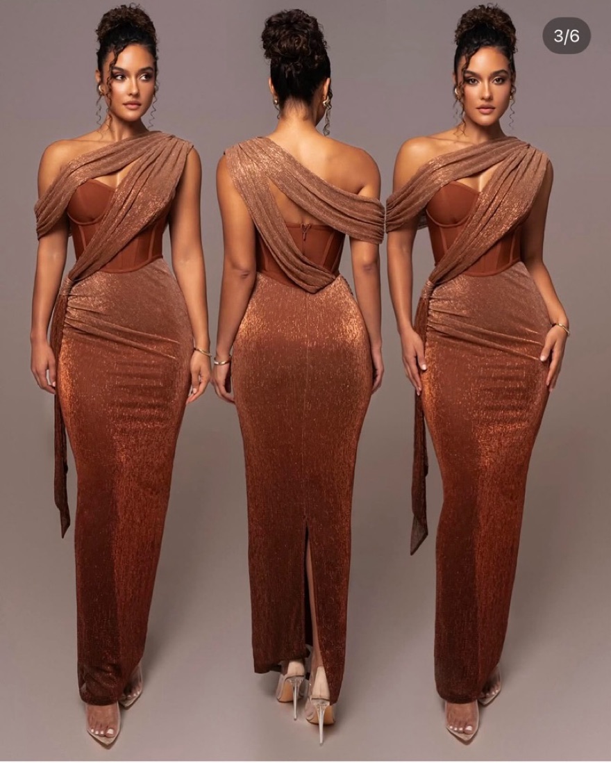 Worn once to a wedding! Beautiful dress with draping across the front