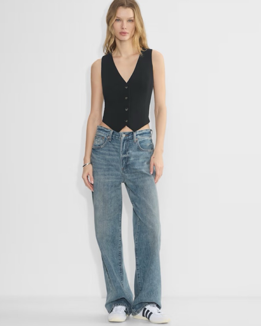 Slim-fit Japanese crepe button-up suit vest. Button closure Black size 4/S. Pairs well with the Generation Blazer, same color and same fabric.