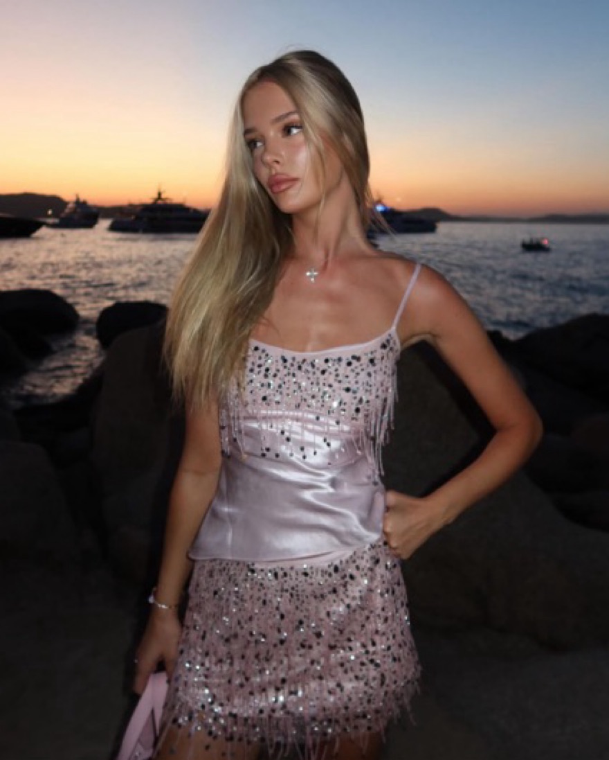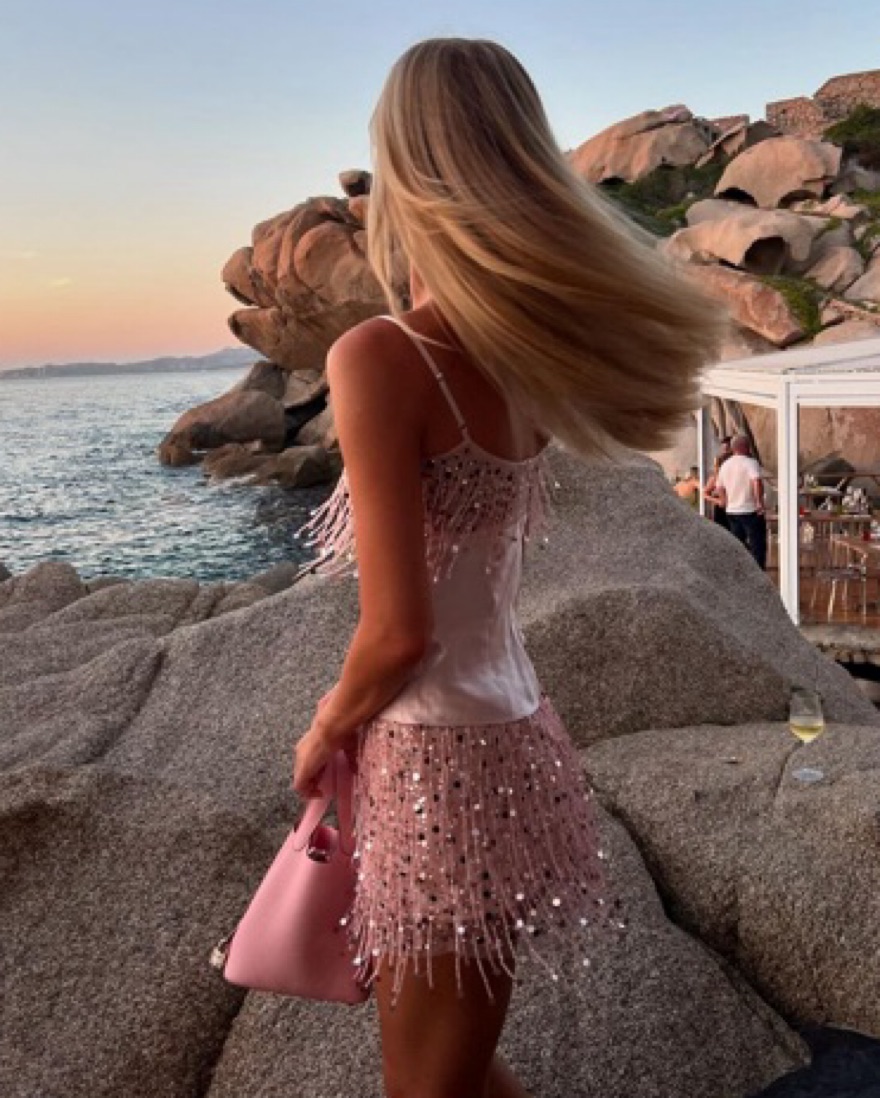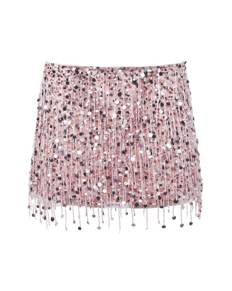 Asta Resort Yasmin hand beaded pink mini skirt - blush pink size S