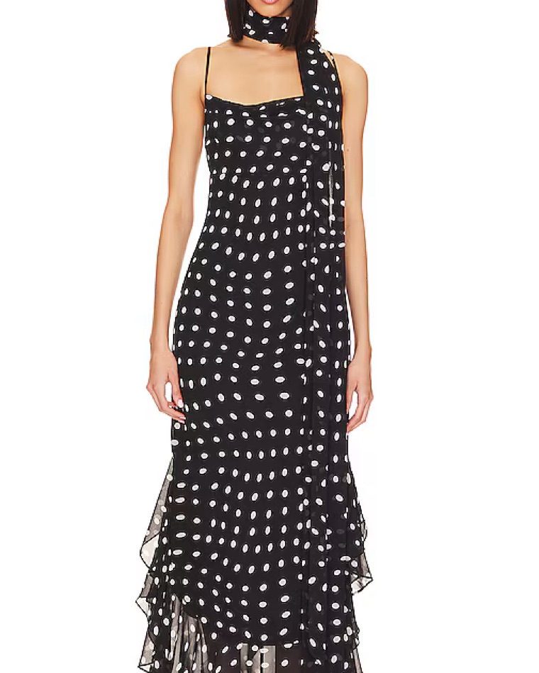 The most stunning dress ever! Wore this once to a dinner date, in like-new condition. Comes with a scarf that you can wear as a head piece or elegantly around the neck. The bottom of the dress is flared/tiered, so looks super flattering on! Feel free to send any Qs via message / IG :)