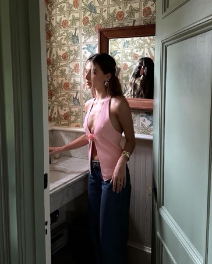 Pink summer crop top. Very flattering on