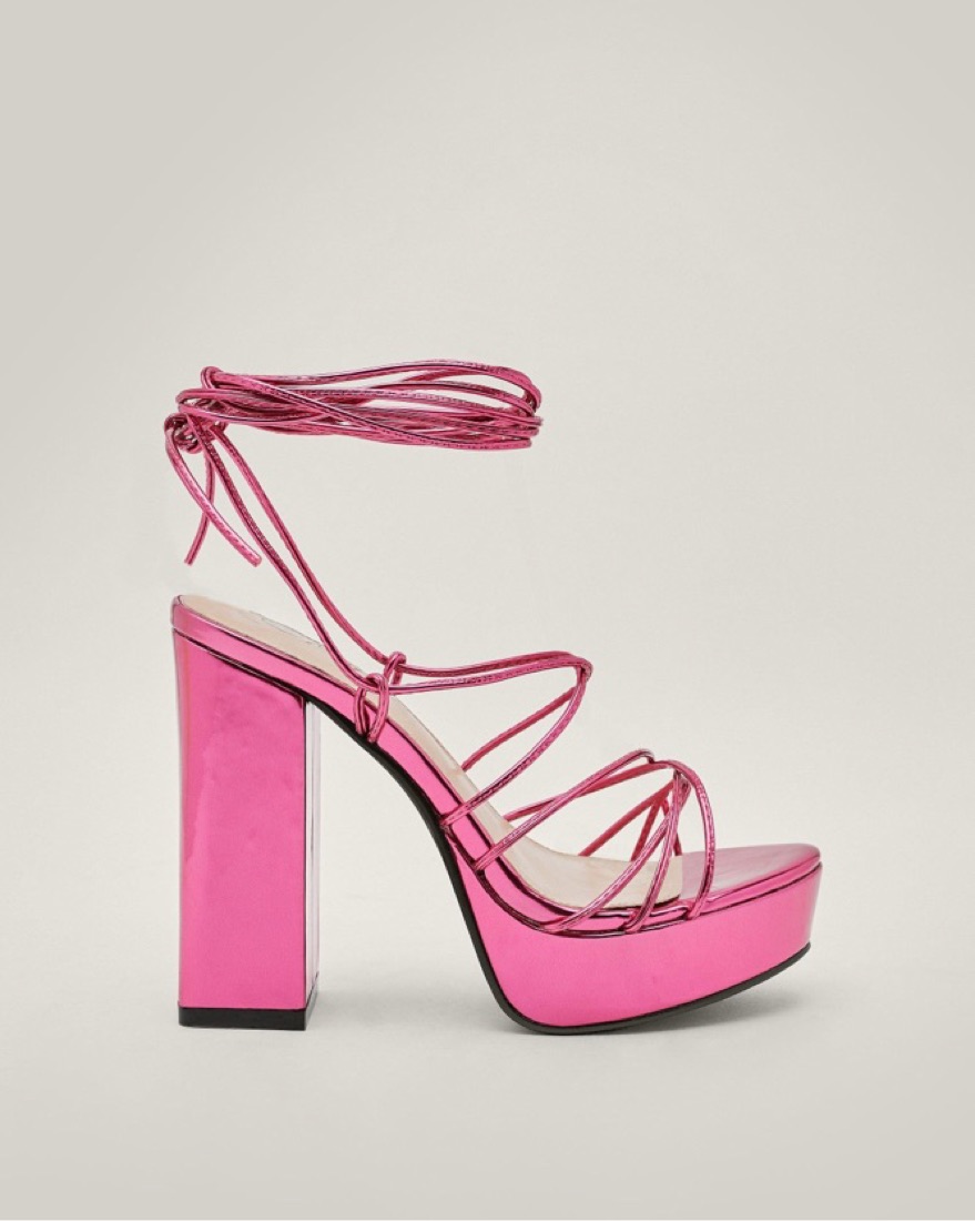 hot pink metallic strappy platform heels by Nasty Gal - Pickle