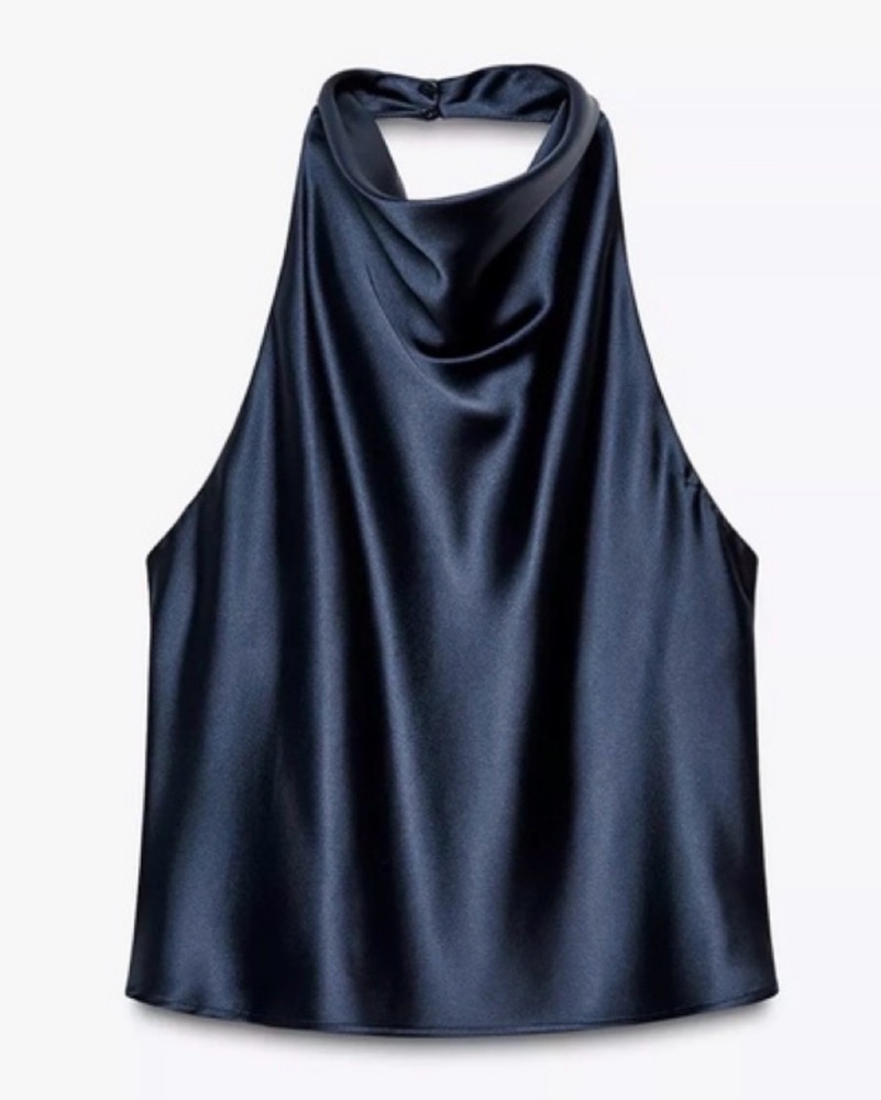 Zara Satin Navy Backless Top