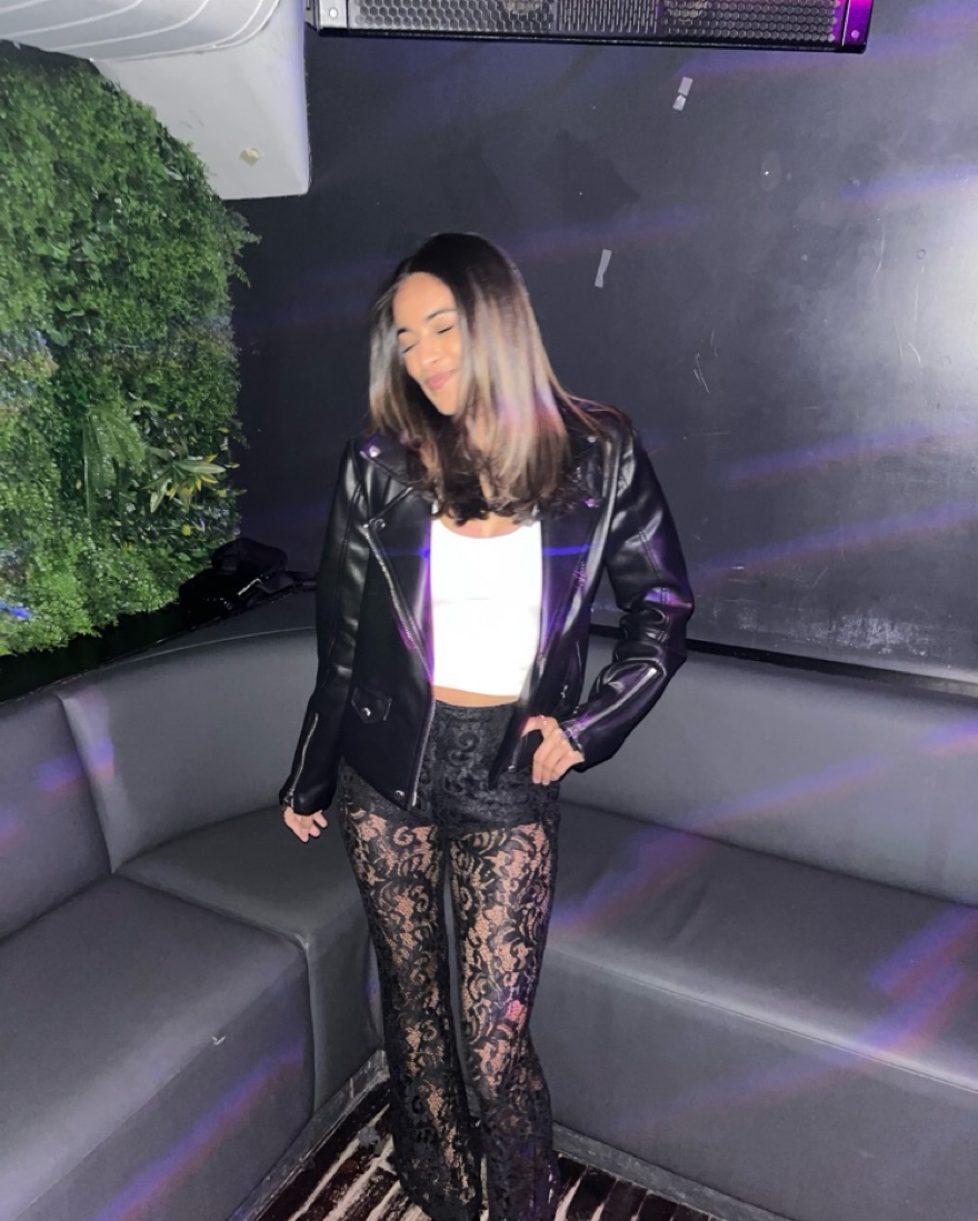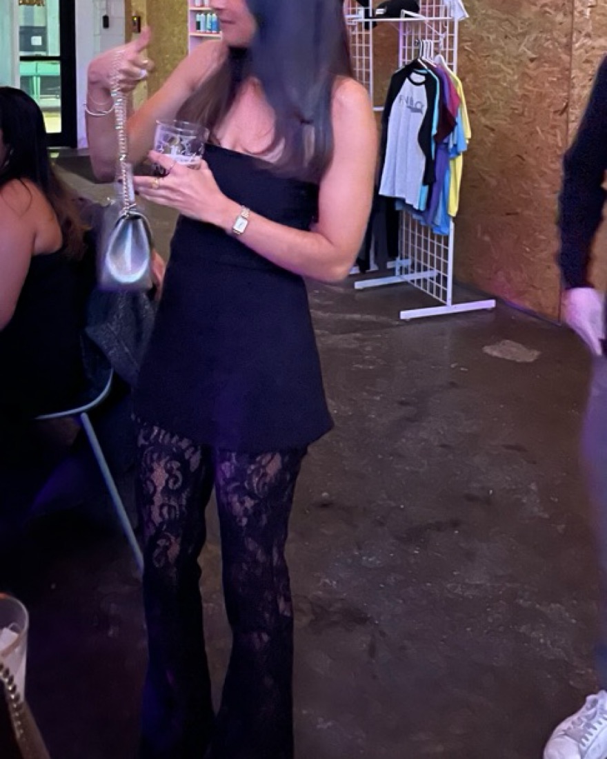 Black Lace Pants with built-in shorts from Wolf & Badger. They are perfect for a night out. I am 5’4” for reference.