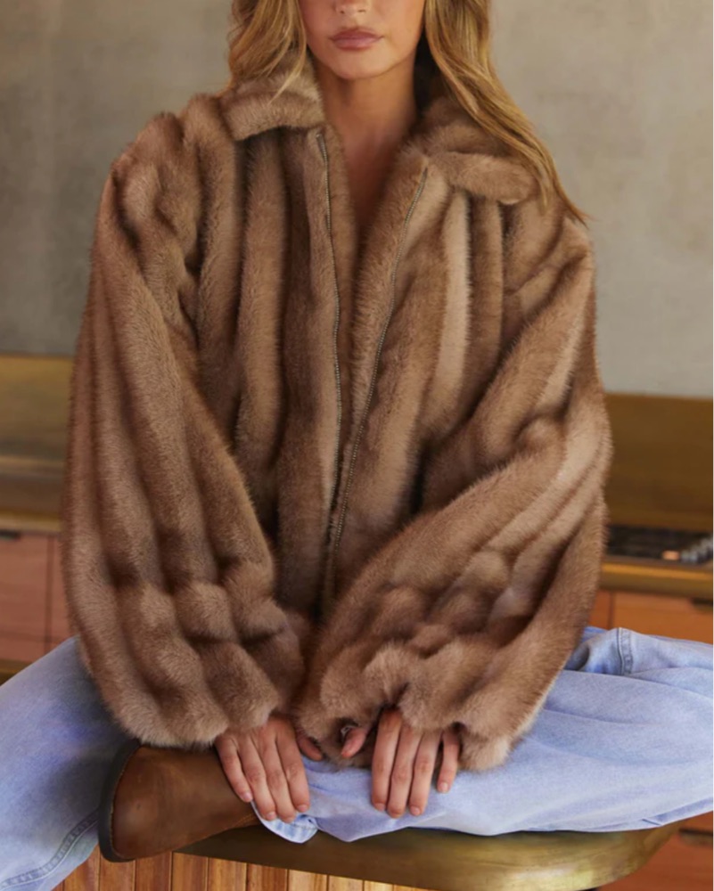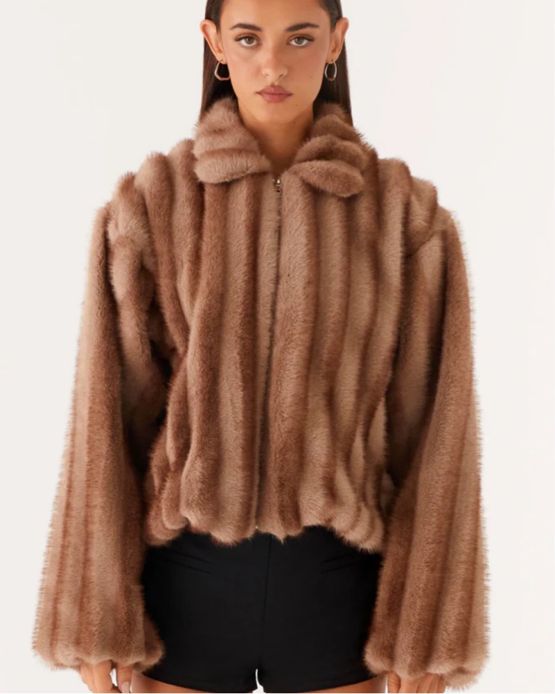 Peppermayo Exclusive - Naylor Faux Fur Jacket - Brown. Size M/L
