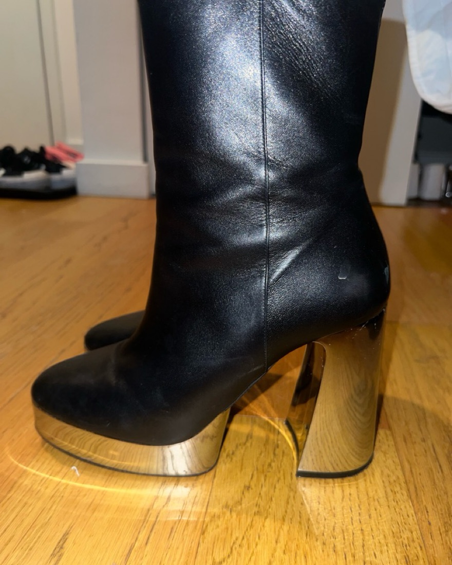 Brat summer to brat fall pipelineš«” used Gucci black leather platform boots with chrome bottom - perfect for GNO or fall festivities!