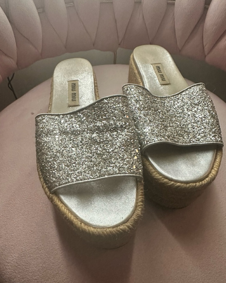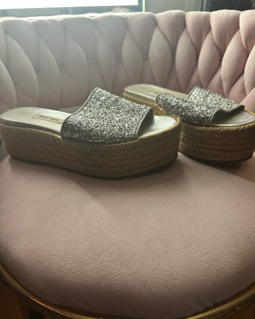 Miu Miu slides with silver glitter detail and platform sole. european size 35.5.