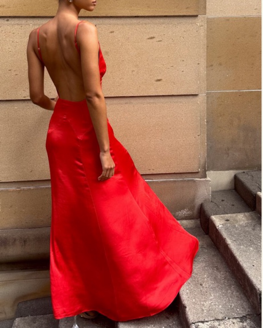 This stunning red maxi dress is perfect for a night out on the town. The deep v-neckline and backless design create a sexy and elegant look.