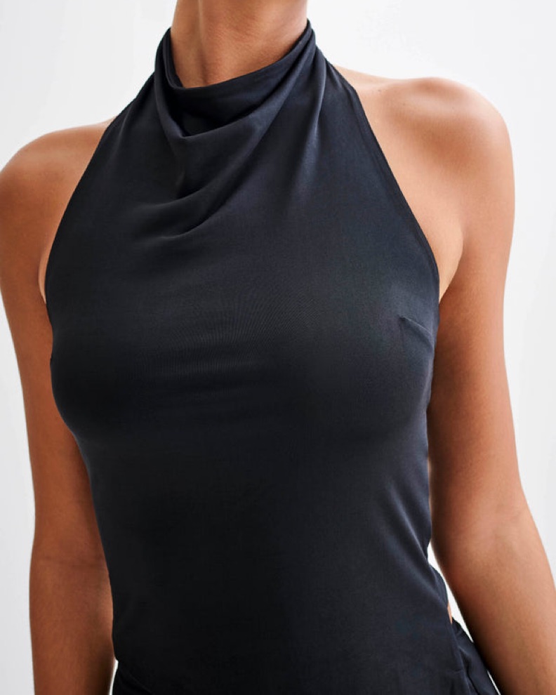 Meshki Federica Slinky Halter Neck Top by Meshki - Pickle