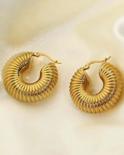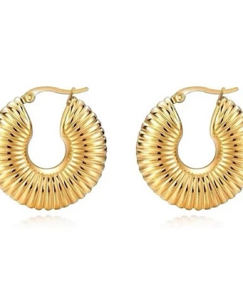 Elegant chunky textured hoop earrings Lightweight 14K gold plated Hypoallergenic Water-safe Size: ~1.2-1.25”
