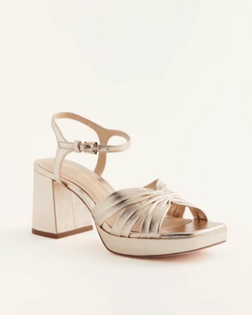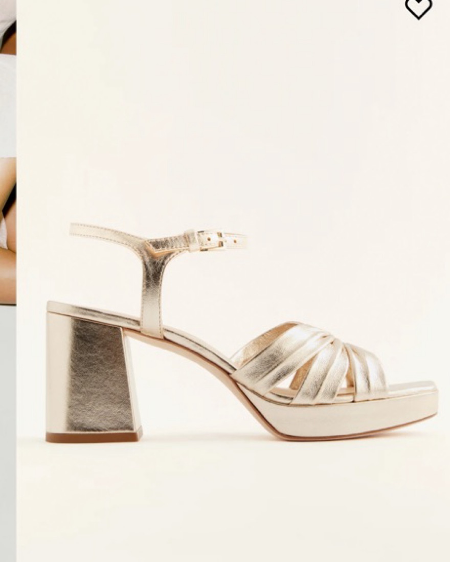 Gold platform sandals from reformation. Very comfy for weddings or night out