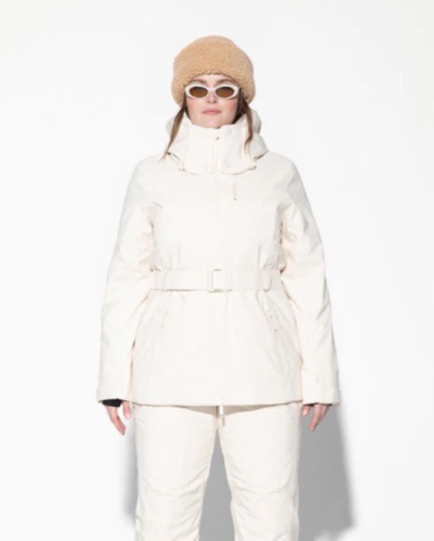 Halfdays Aston Jacket Oat Milk (XS). Belted jacket that’s super warm and flattering! Can bundle discount with bib. Insulated, 20,000mm waterproof rating, underarm vents, hand pockets, forearm pass pocket, exterior chest pocket.
